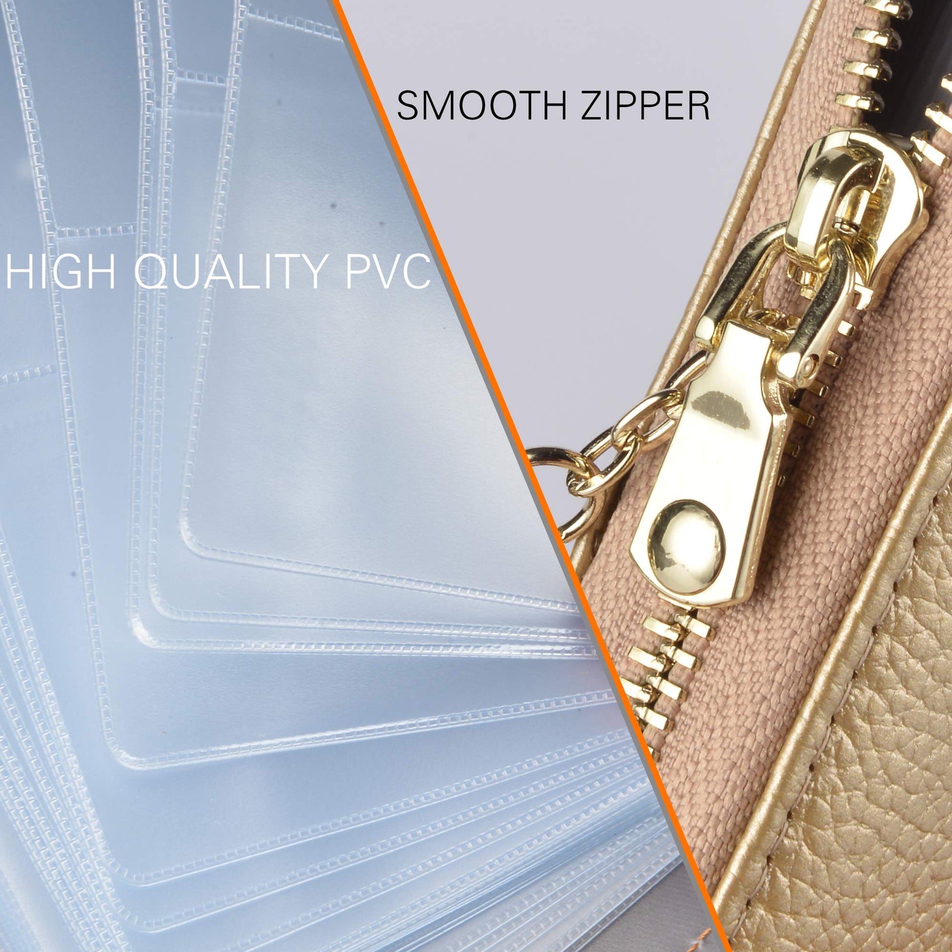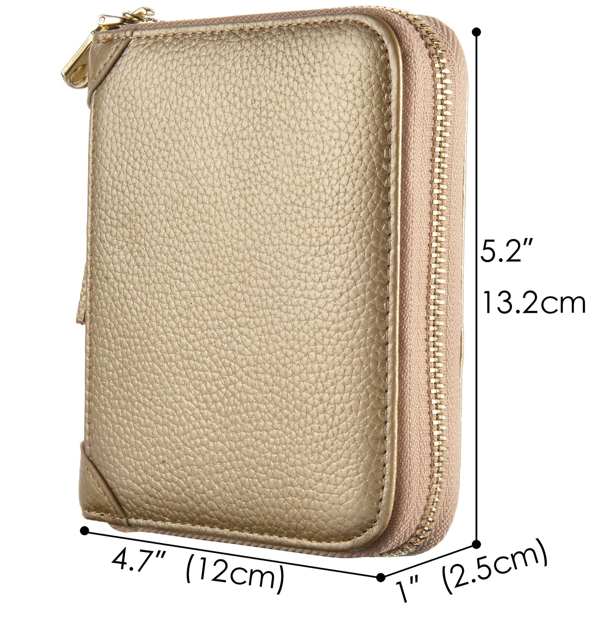 Easyoulife Womens Credit Card Holder Wallet Zip Leather Card Case RFID Blocking (Gold)