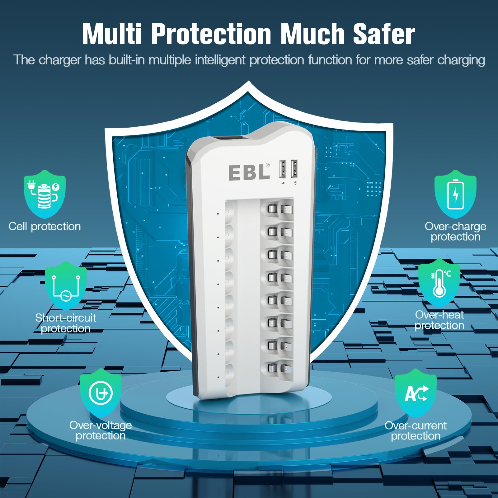 • - Intelligent and Safe Batteries Charger: With advanced MCU control system, the aa battery charger will automatically stop charging when detecting improper input voltage, defective or short circuit. Unique outlook design for good heat dissipation to provide stable performance.