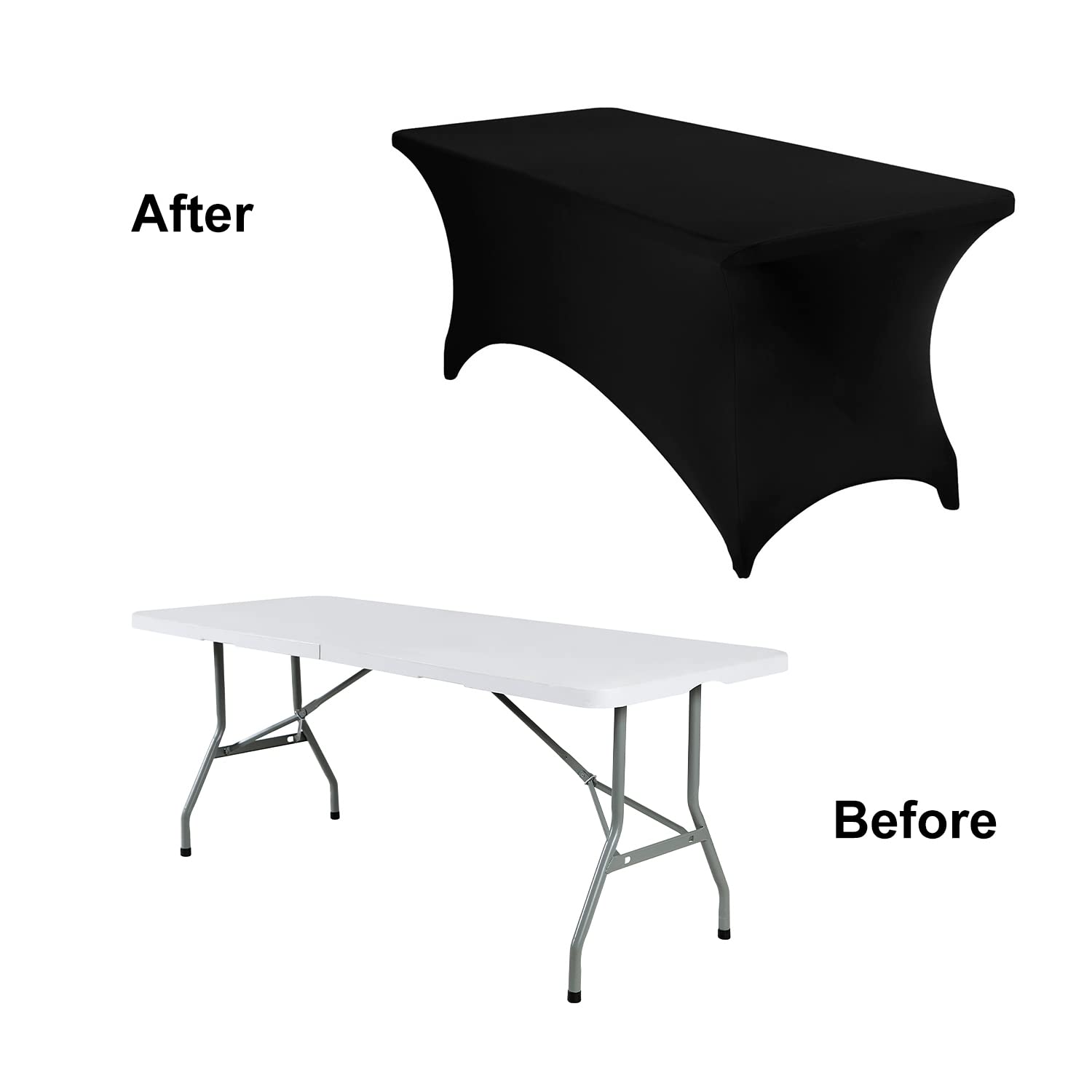 • Design: The spandex tablecloth is always fitted and tight. This 4 Way stretchable spandex table covers are designed with reinforced foot pockets for table legs, which not only make a tight and professional look, but also insure your table cover won't slip around or billow with wind.
