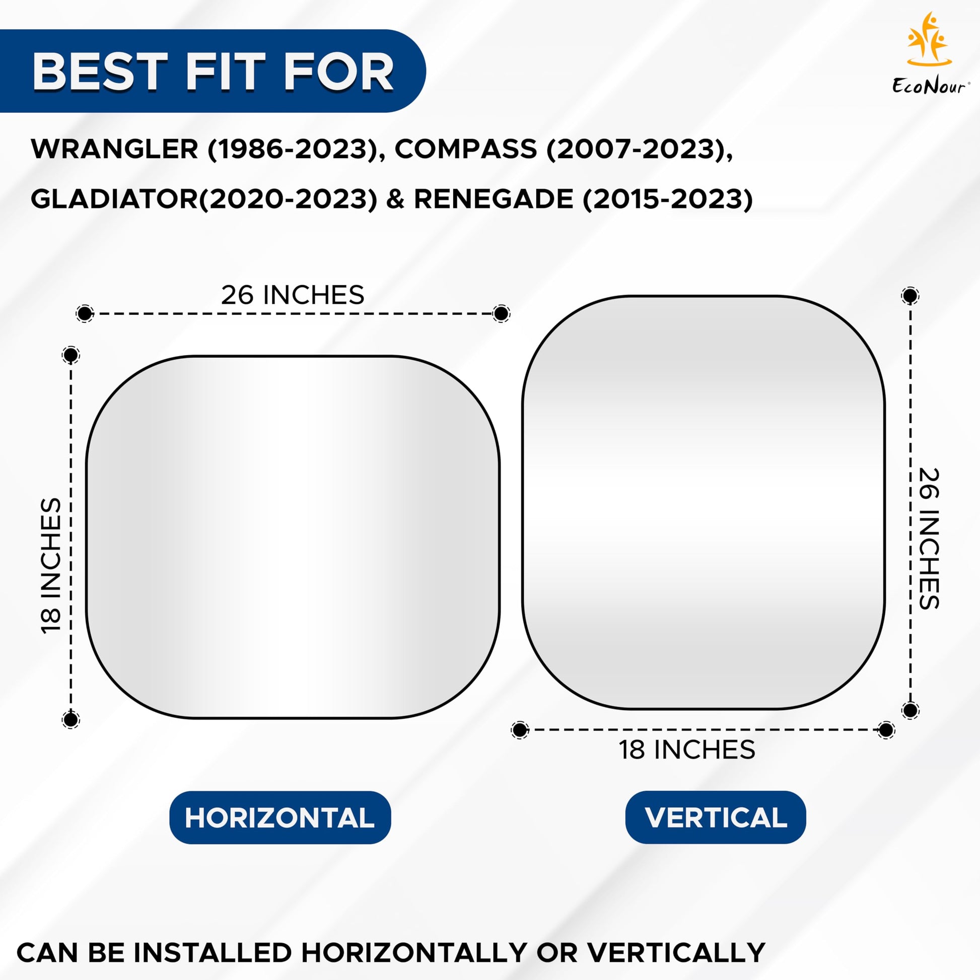 EcoNour 2-Piece Windshield Sun Shade for Jeep, Offers Complete Automotive Sun Protection, Foldable Jeep Windshield Shade Suits Wrangler, Compass, Gladiator & Renegade, (X-Small 18 in x 26 in)