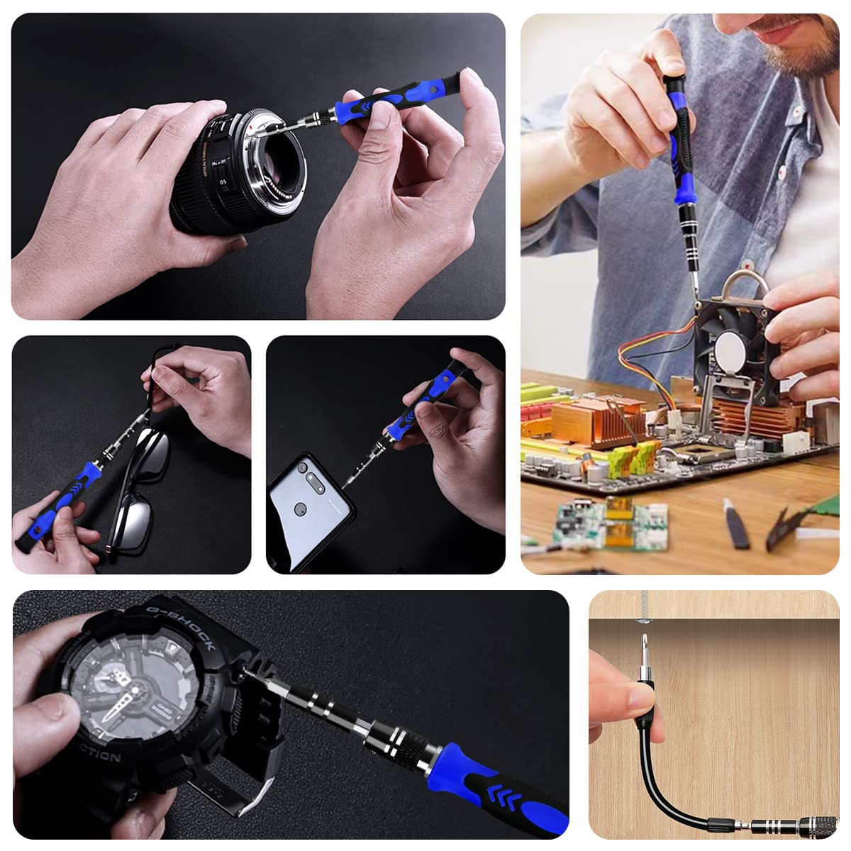 • 🎐【High Quality & Excellent Service】: The precision bits are made of 60HRC Chromium-vanadium steel which is resist abrasion, oxidation and corrosion, sturdy and durable, ensure long time use. All screwdriver sets are strictly QC double tested before shipping. We believe in our product and this computer tool kit is covered by our lifetime warranty. If you have any issues with the quality or usage, please contact us by email directly, we will provide you with the best solution as soon as possible.