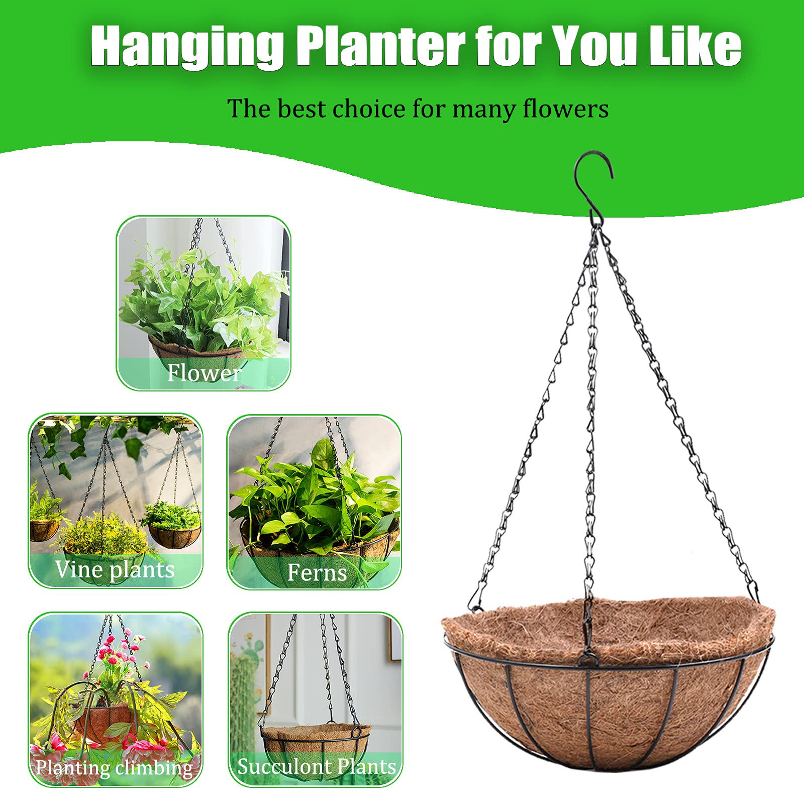 • Sturdy material:Hanging plant holder basket flower frame and chain surface are plated with black coating to prevent rust,coconut palm fiber can keep the moisture of plants,which is environmentally friendly and durable.