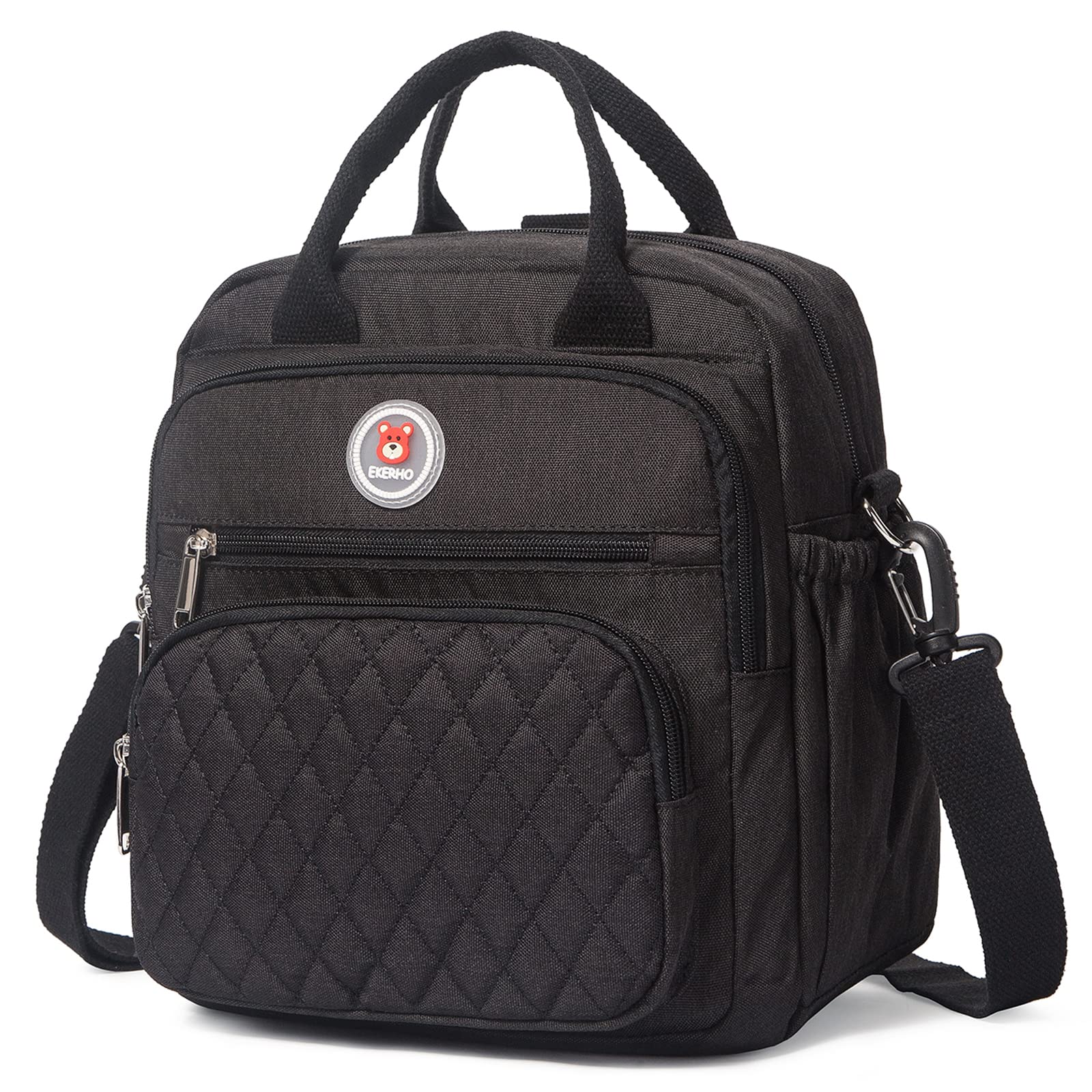 • ★【LARGE CAPACITY & MULTI COMPARTMENTS】: The lunch bag (11'H x 10.3'L x 6.3'W) is designed for maximum storage efficiency, 1 main zipped compartment, 3 Large front zipped pockets, 1 back pocket, 2 side pockets. It can easily hold your snacks, drinks, sandwiches, fruits, and lunch boxes.3 front and 1 back pockets can put utensils, napkins, keys, and bus cards. Powerful organization ability to carry more foods easily to improve your to-go daily life.