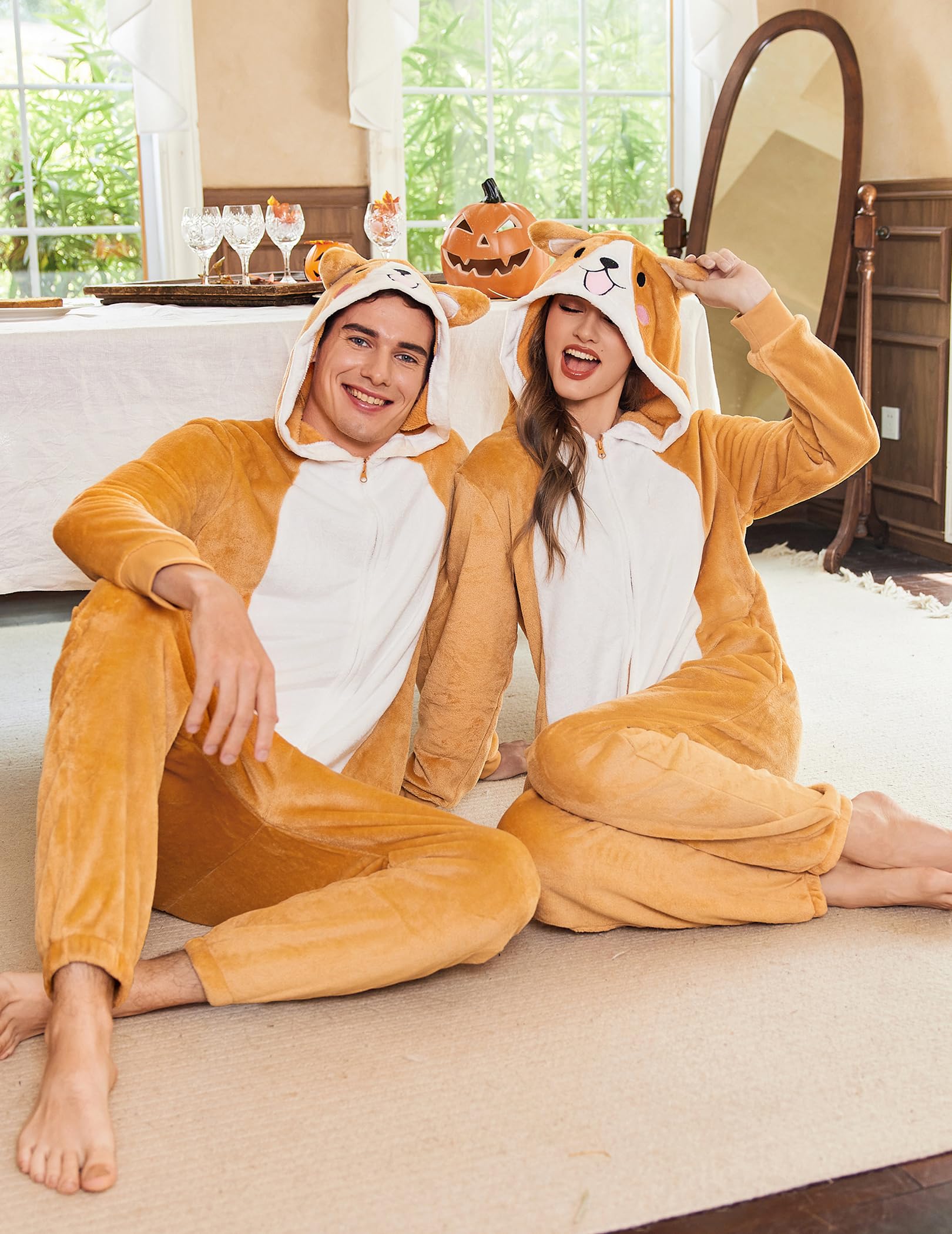 Ekouaer Adult Onesie Animal Halloween Costumes One Piece Pajamas Cosplay Suit Party Wear for Women and Men