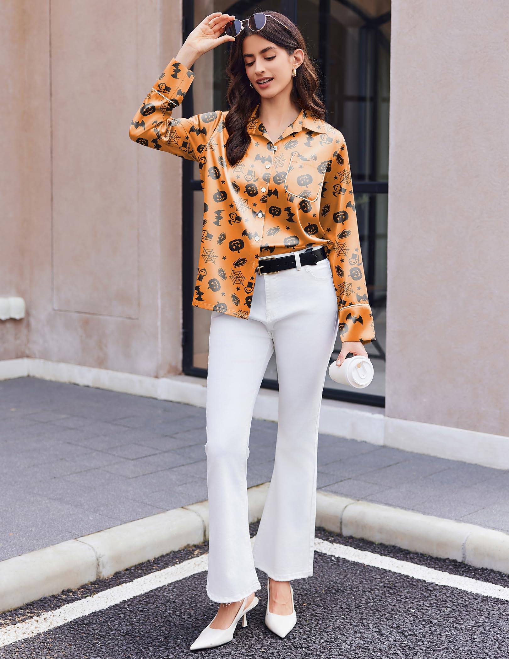 • MATCH: Satin pajama tops can easily match with skirt, pants, jeans. silk pajama pants can be worn with all t-shirts, sexy cami top /loose knitted sweater /fashion bikini top or short T-shirt as lounging outfit. Pajamas set pairs with bag,belts,earrings,sandals as womens outfits for going out.