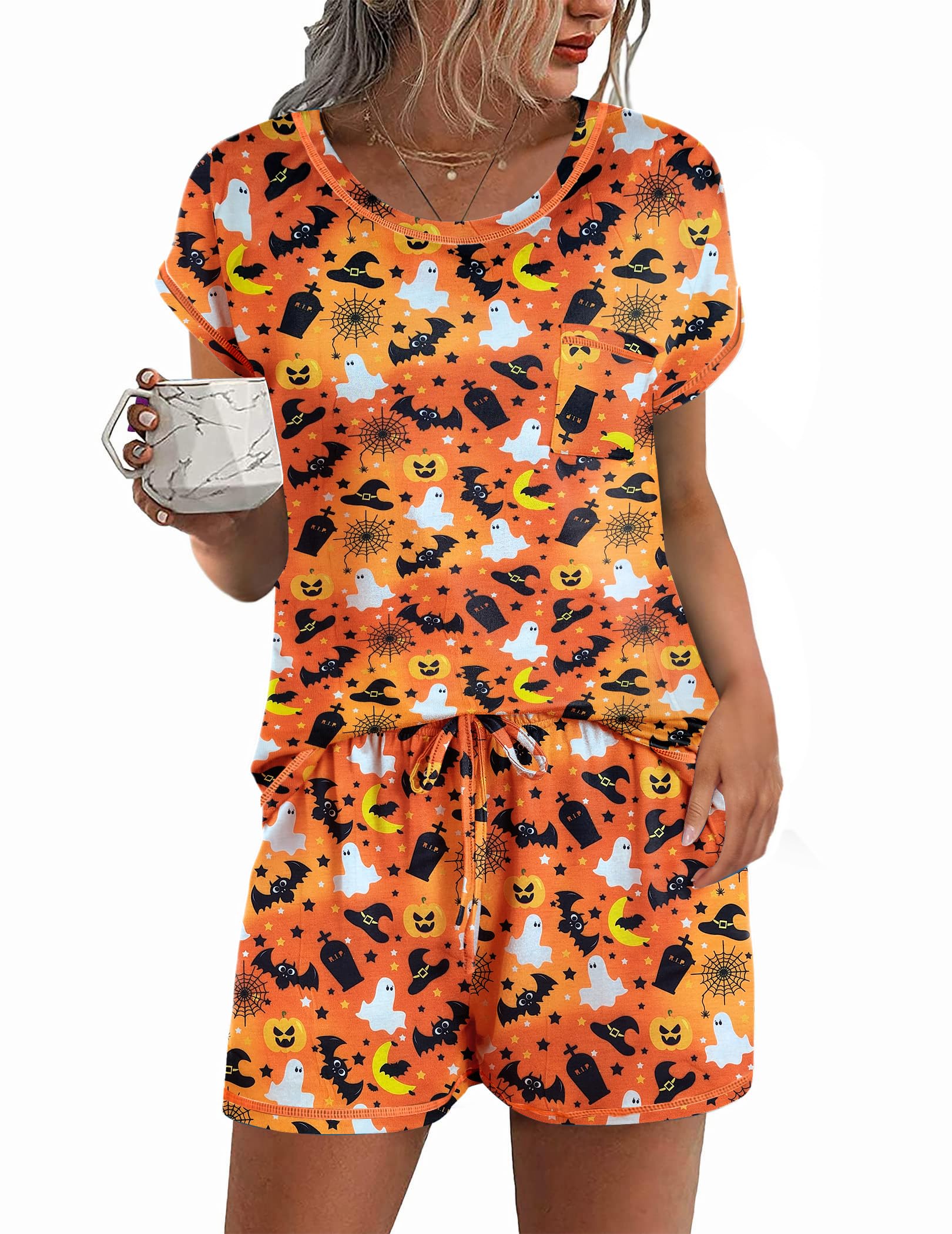 Ekouaer Womens Pajama Sets 2 Piece Soft Short Sleeve Top and Shorts Sleepwear Round Neck Pjs Lounge Set with Pockets Halloween Print X-Large