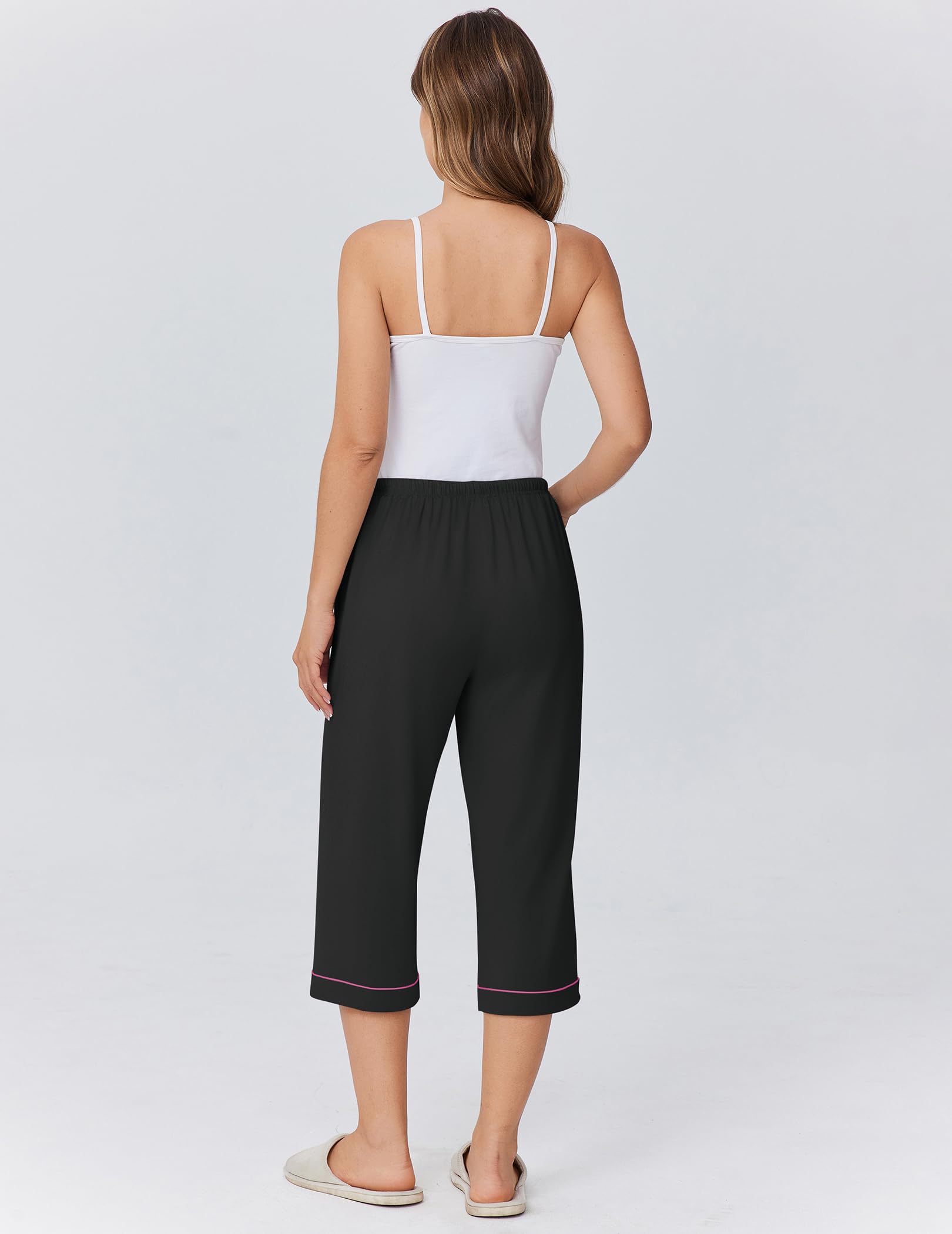 Ekouaer Womens Pajamas Pants Capri Pj Bottoms with Pockets Comfy Drawstring Printed Lounge Soft Sleep Pants