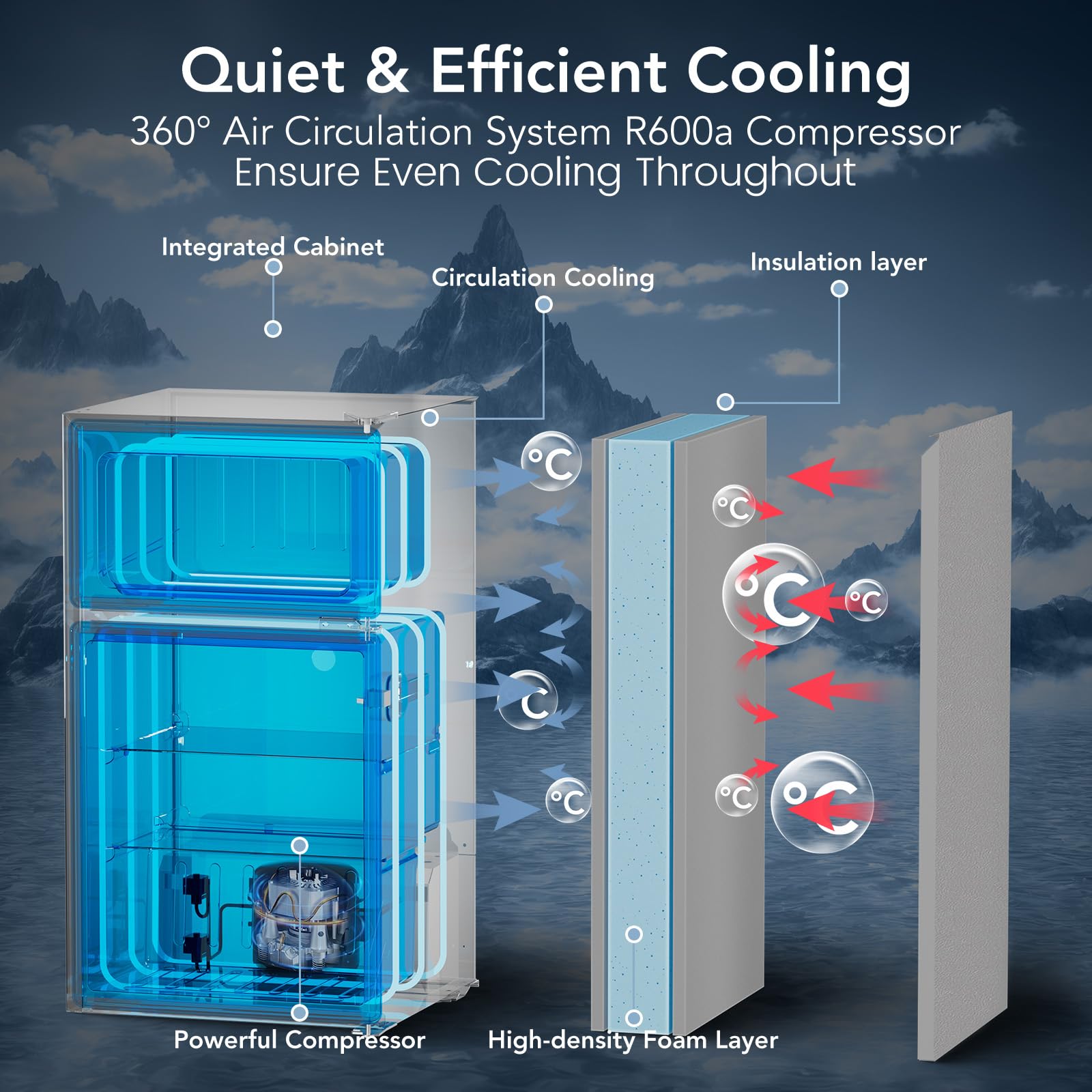Details: 3.1 Cu.Ft Small Fridge with Freezer,Compact Refrigerator with 2 Doors,Mini Fridge with Adjustable Removable Glass Shelves for Bedroom,Dorm or Apartment,mini freezer fridge adopts R600 type high-efficiency low-energy-consumption compressor