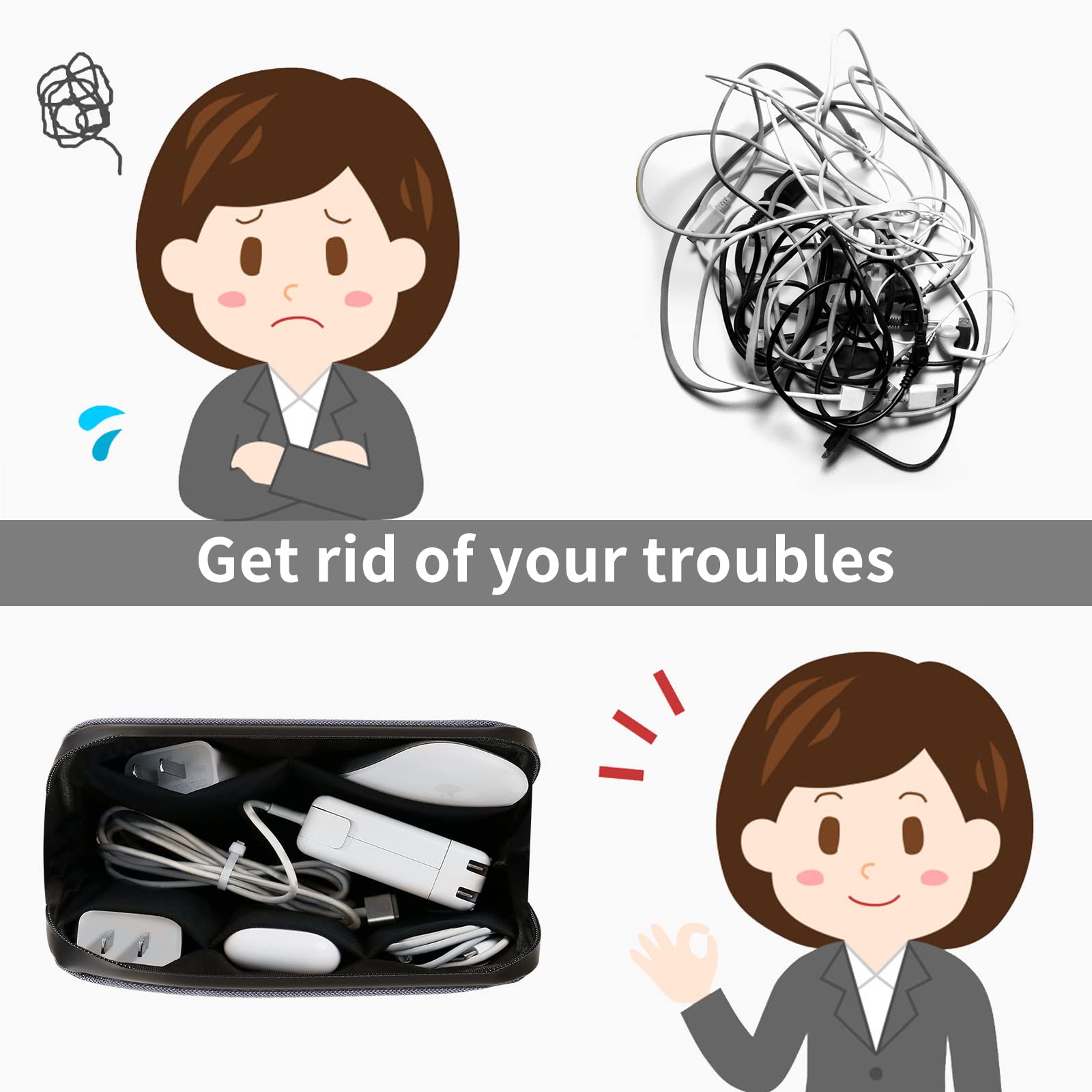 • CABLE ORGANIZER BAGS & CASES CONVENIENT FOR STORAGE: Size 7.87 X 4.72X 2.56 inches. The cable pouch is suitable for daily mobile storage and protects all your technical essentials such as USB cables, flash drives, wall chargers, SD cards, hard drives, power banks, earbuds, Camera, scissors, etc.
