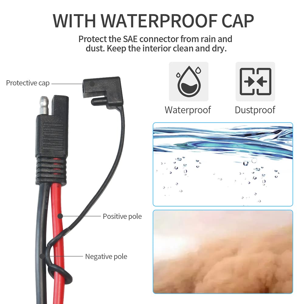 • With Dust Cap: Protects standard SAE style connectors from rain and dust, keeping the interior clean and dry when you're not using it. Works well even in bad weather.
