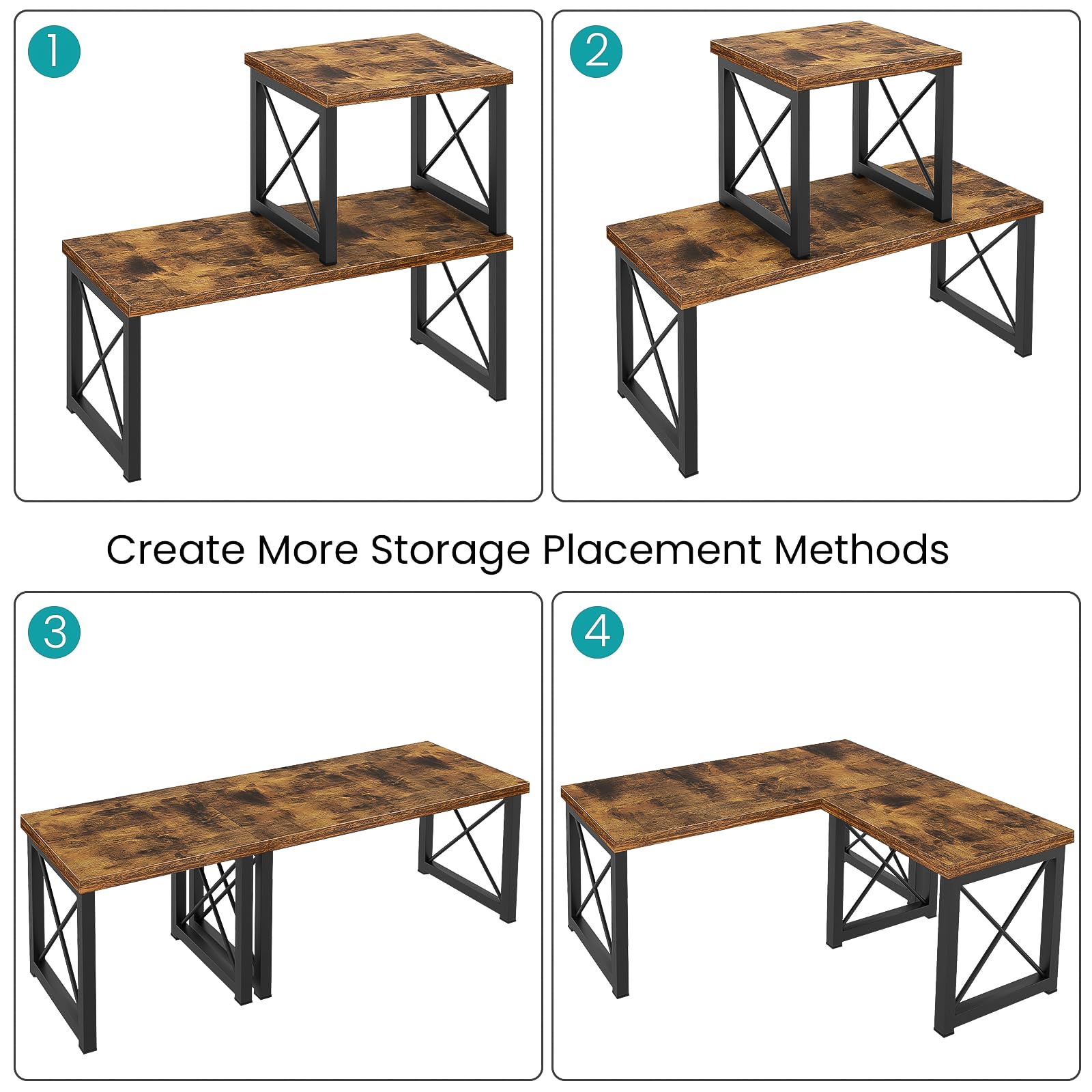 • 【Stackable Storage Design】Our desktop organizer is made up of two adjustable separate pieces that can be configured in various ways to fit your space and preferences. Whether you need a small shelf rack or an extended storage unit, our organizer can be used as a corner stand, desktop monitor stand, countertop shelf, or any other application you can think of.