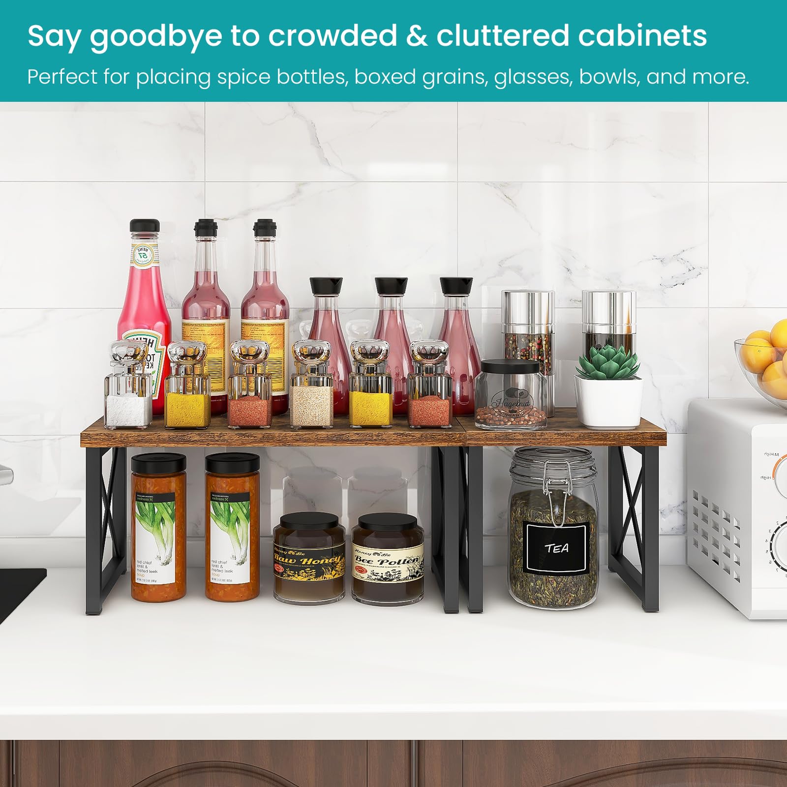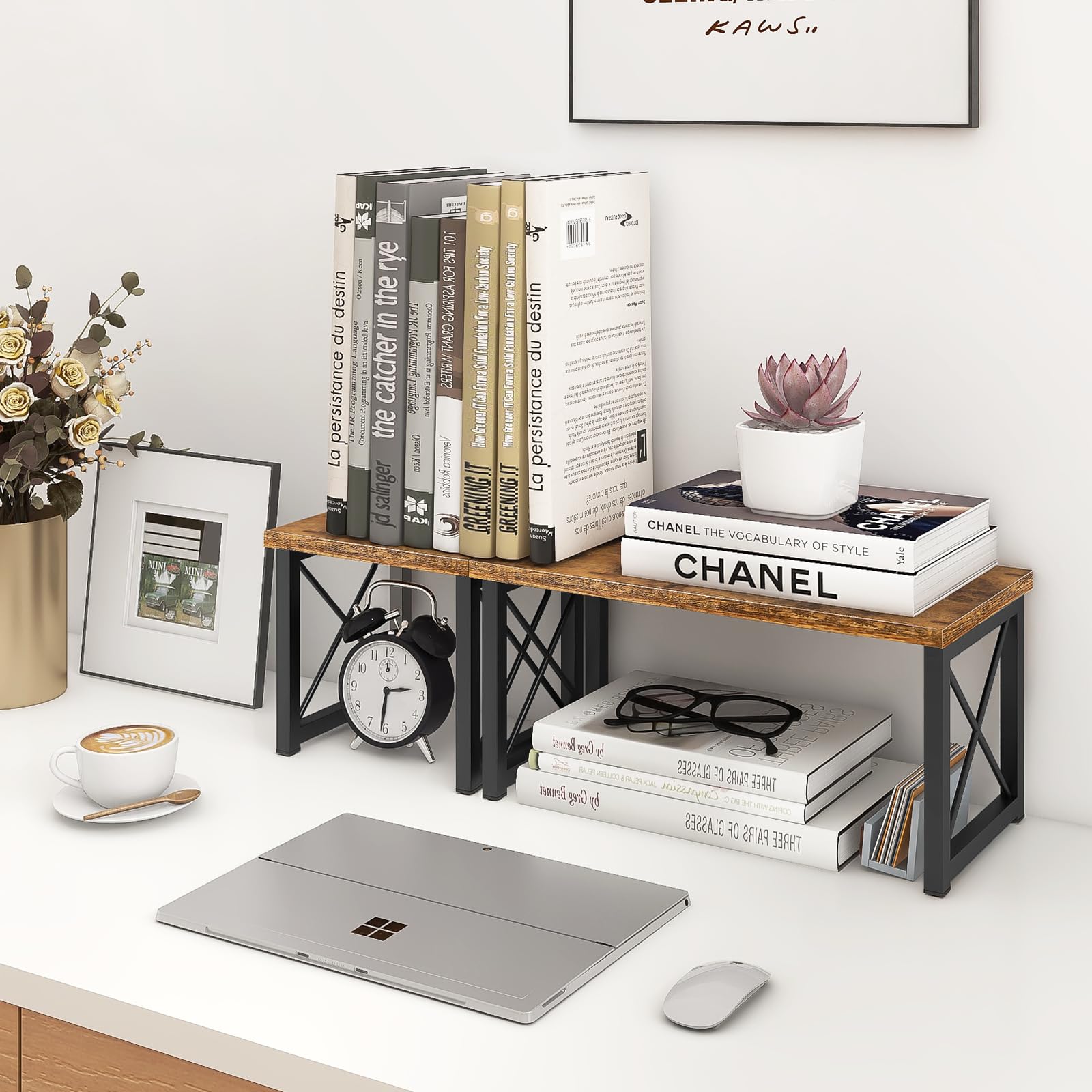 ELITEROO Wood Desktop Shelf, 2 Tier Adjustable Small Bookshelf Organizer, Freestanding Stackable Desk Stand, Storage Organizers, Kitchen Counter Display Rack, Rustic Brown