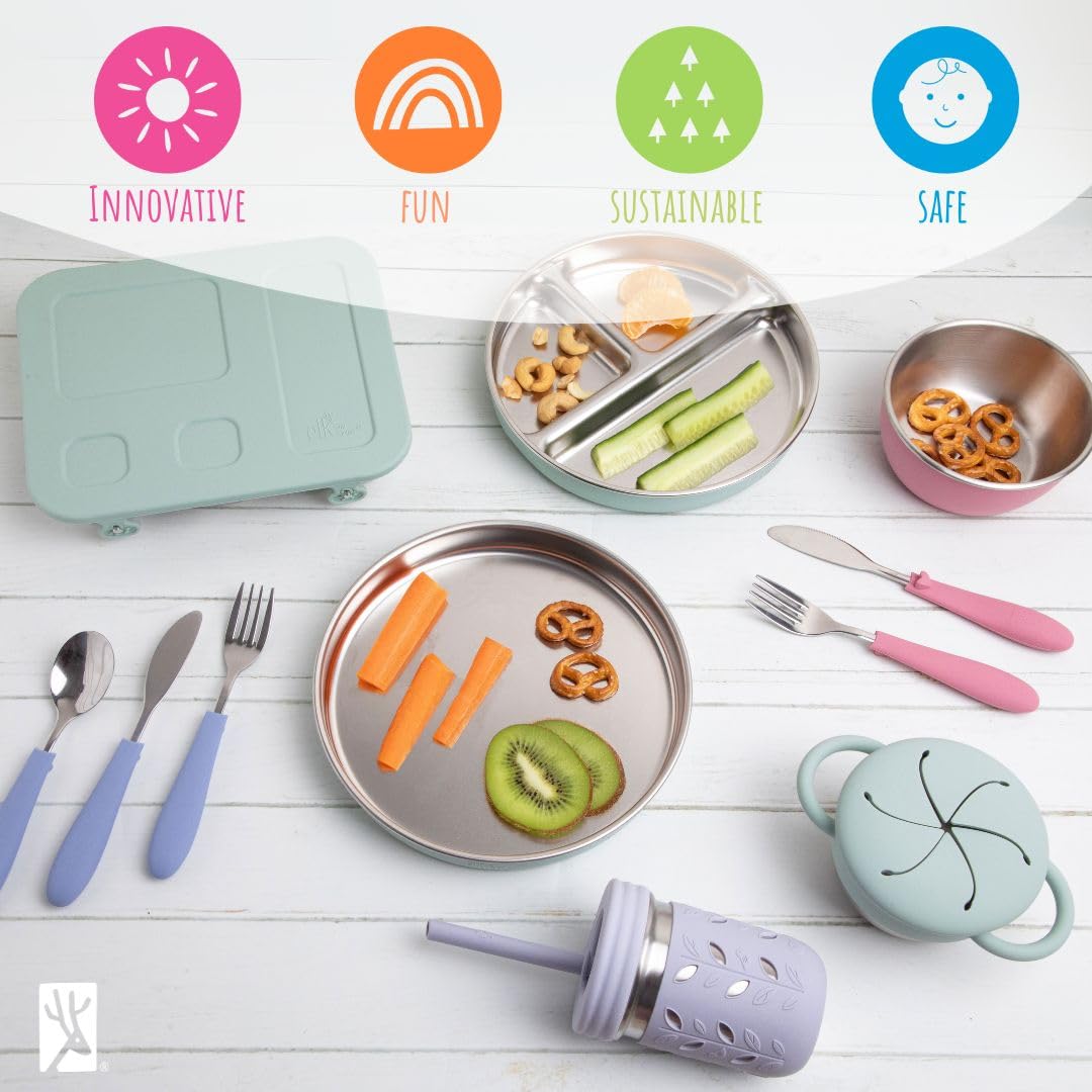 • SAFE, DURABLE MATERIALS: Made from stainless steel, food grade silicone and BPA-free plastic, the materials are non-porous, safe, and dishwasher safe (no need to remove the silicone sleeve!). Built to last and independently tested by third-party experts to meet all important safety standards, they’re made for busy families who value quality, trust and peace of mind.