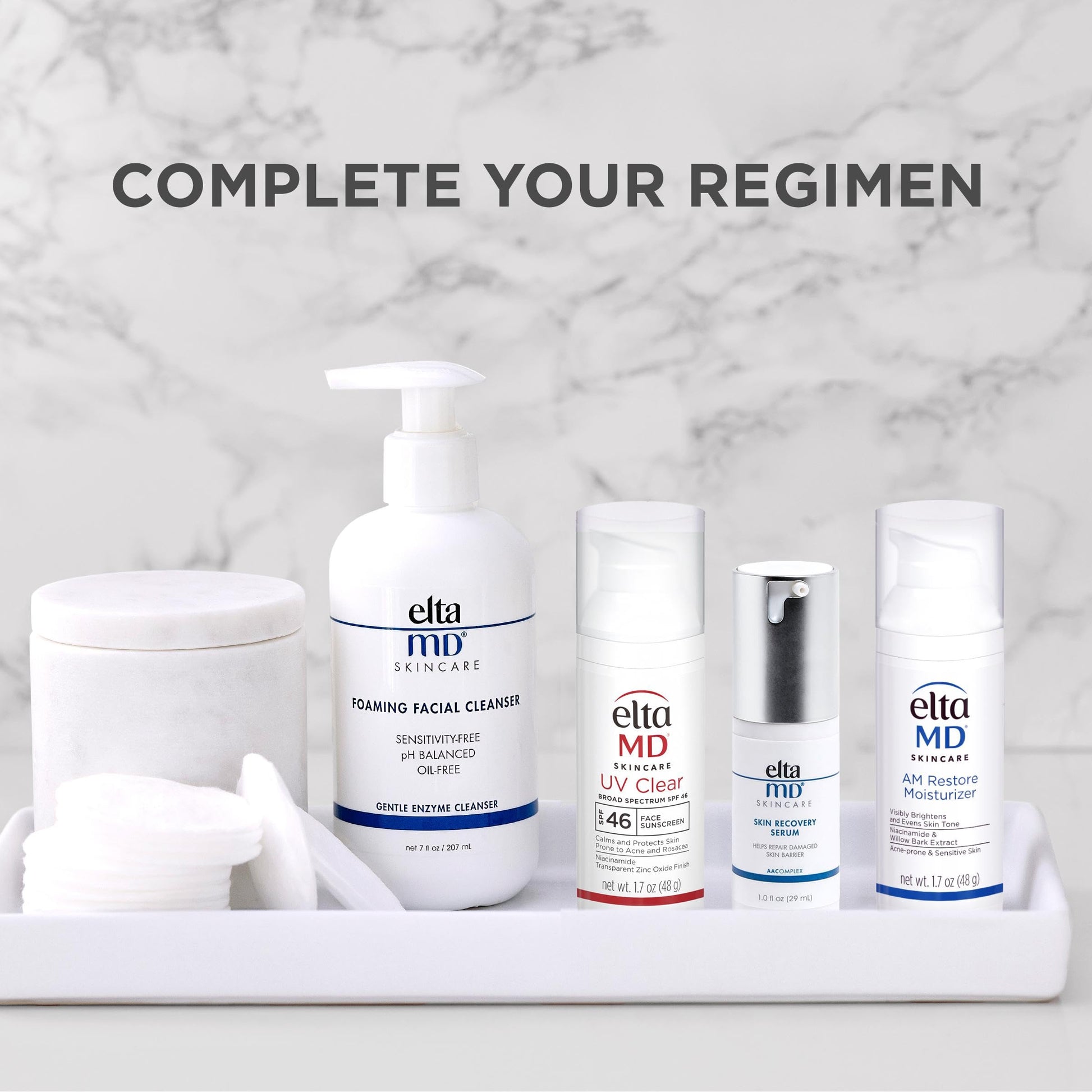 Details: EltaMD UV Clear Face Sunscreen SPF 46 is an Elta MD sunscreen for your face that is designed to provide broad spectrum sunscreen protection against UVA and UVB rays. This sunscreen lotion incorporates transparent zinc oxide sunscreen that leaves no white cast. Ideal for sensitive skin, this unscented sunscreen is oil-free, paraben-free, and suitable for acne-prone skin. This dermatologist-recommended sunscreen serves as both a facial sunscreen and a sunscreen for acne-prone skin. Perfect for frequent travelers, the convenient travel-size 1.7 oz pump makes it easy to carry. This sunscreen for face can be applied alone or under makeup, for sun protection without the grease.