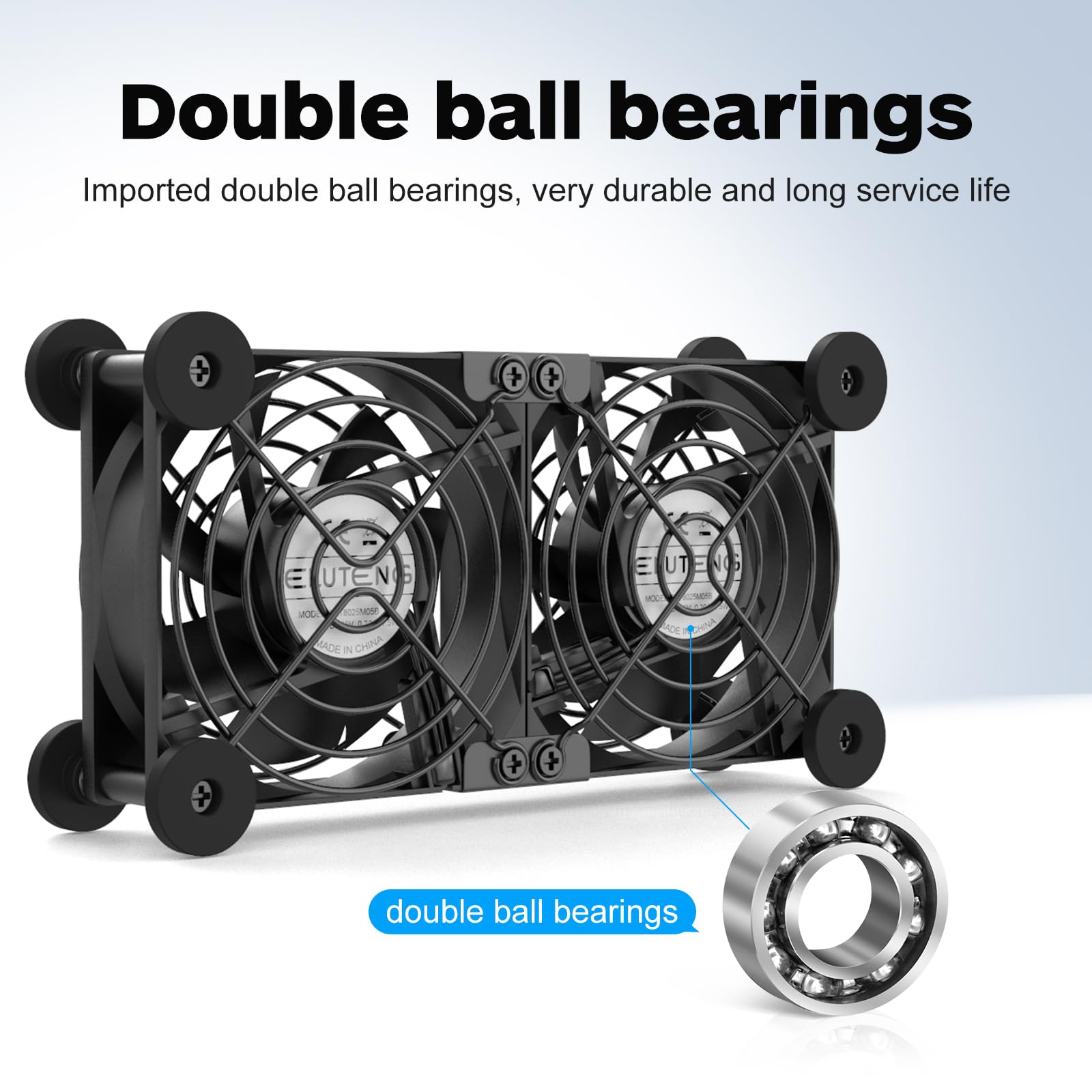 • 【2 in 1 Dual Row 80mm USB Fan】ELUTENG dual row 8cm USB fan, USB powered, plug and play, can place the fan horizontally or vertically, ideal for cooling Router/Laptop/TV box/Receiver/Mobile phone/PS5/PS4/Projector Instrument/Hard Drive Enclosure. 2 fans are connected together and run at the same time, the cooling effect is better.