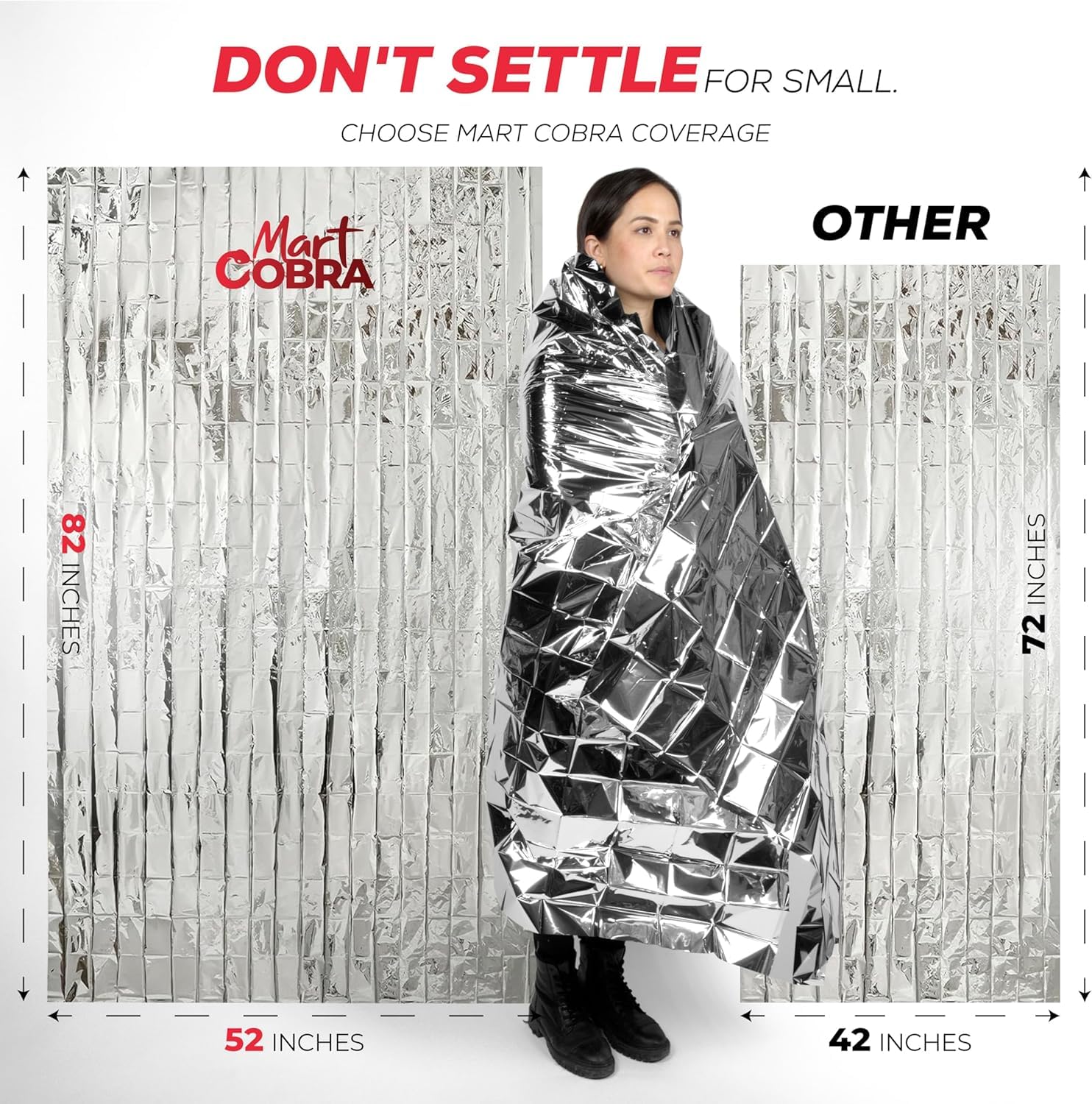 • Compact & Lightweight Design: Each survival space blanket measures 82' x 52' when unfolded yet folds down to a compact size, making it easy to store in bug out bags, backpacks, cars, emergency kit, survival kit, or apocalypse gear without adding bulk