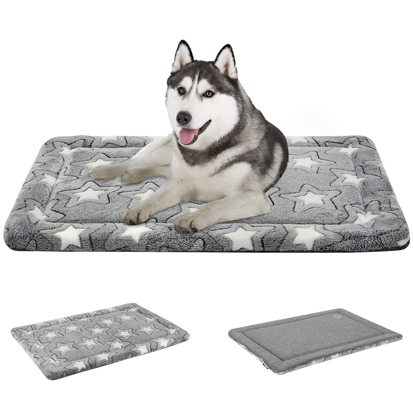 EMPSIGN Dog Bed Mat for Dog Cage (92 * 61 * 2.8cm, Dog Bed Pad Reversible (Cool & Warm), Machine Washable, Pet Sleeping Mat for Medium to Large Dogs, Grey, Star Pattern