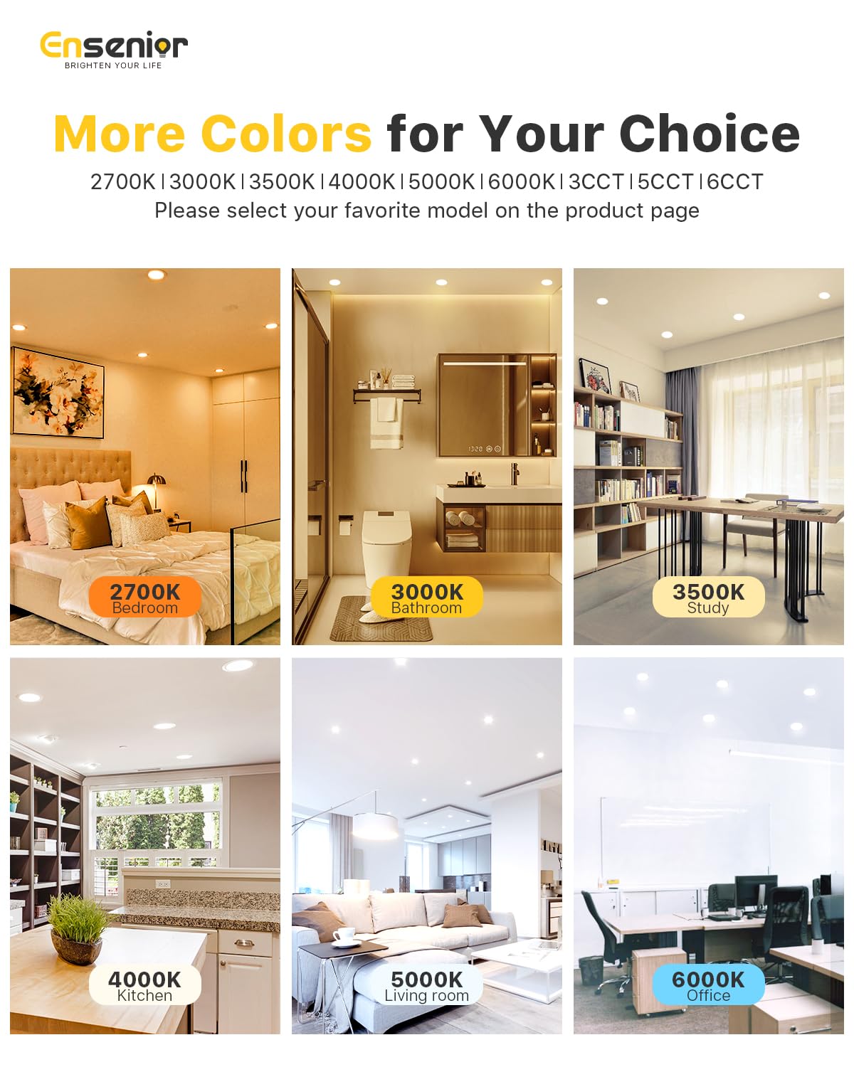• 💡【IC Rated】Ensenior's light is IC rated, ETL & Energy Star certified, and features UL-certified wire terminals. Engineered with thermal protection and insulation compatibility, the junction box provides safety in 50000 hours life span.