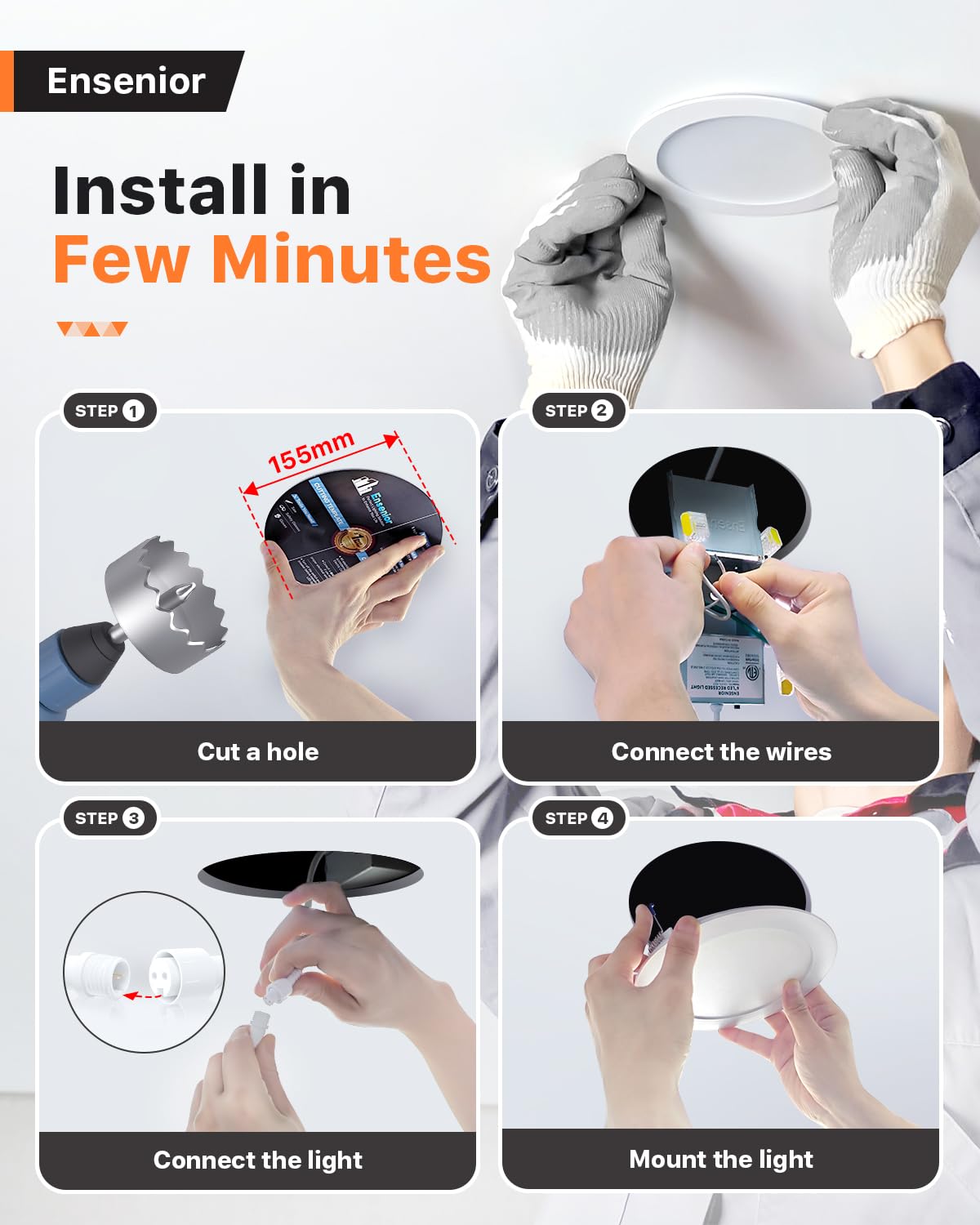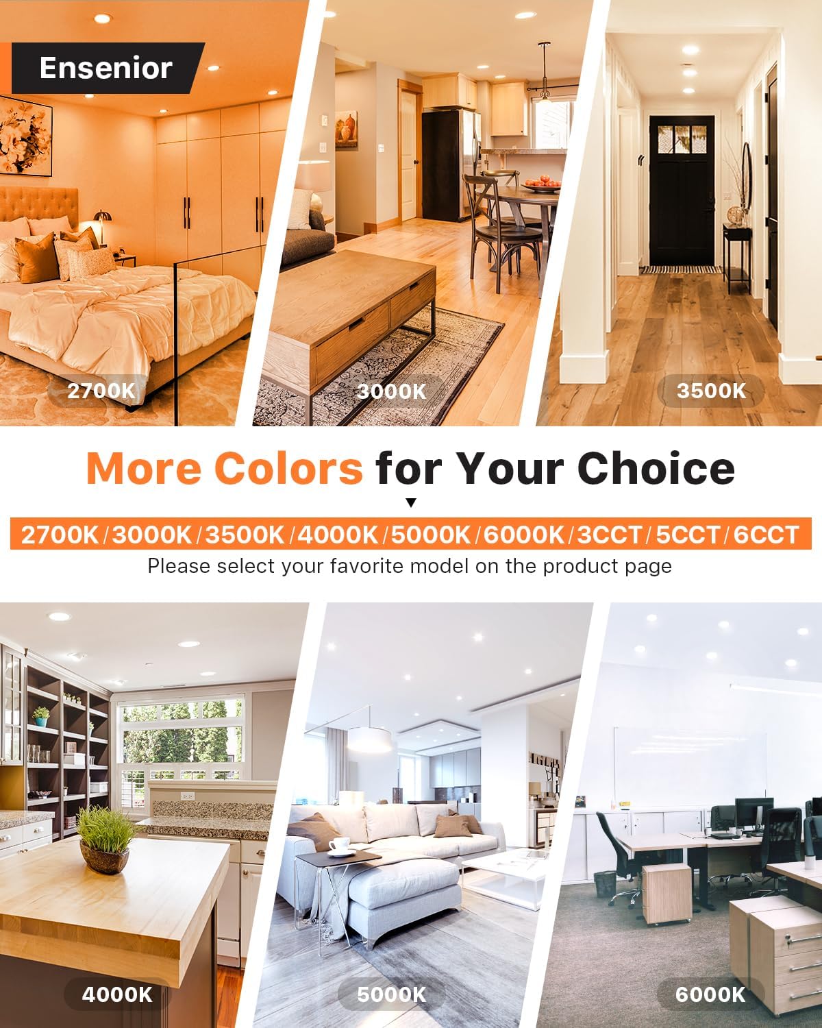 • 💡【IC Rated】Ensenior's light is IC rated, ETL & Energy Star certified, and features UL-certified wire terminals. Engineered with thermal protection and insulation compatibility, the junction box provides safety in 50000 hours life span.