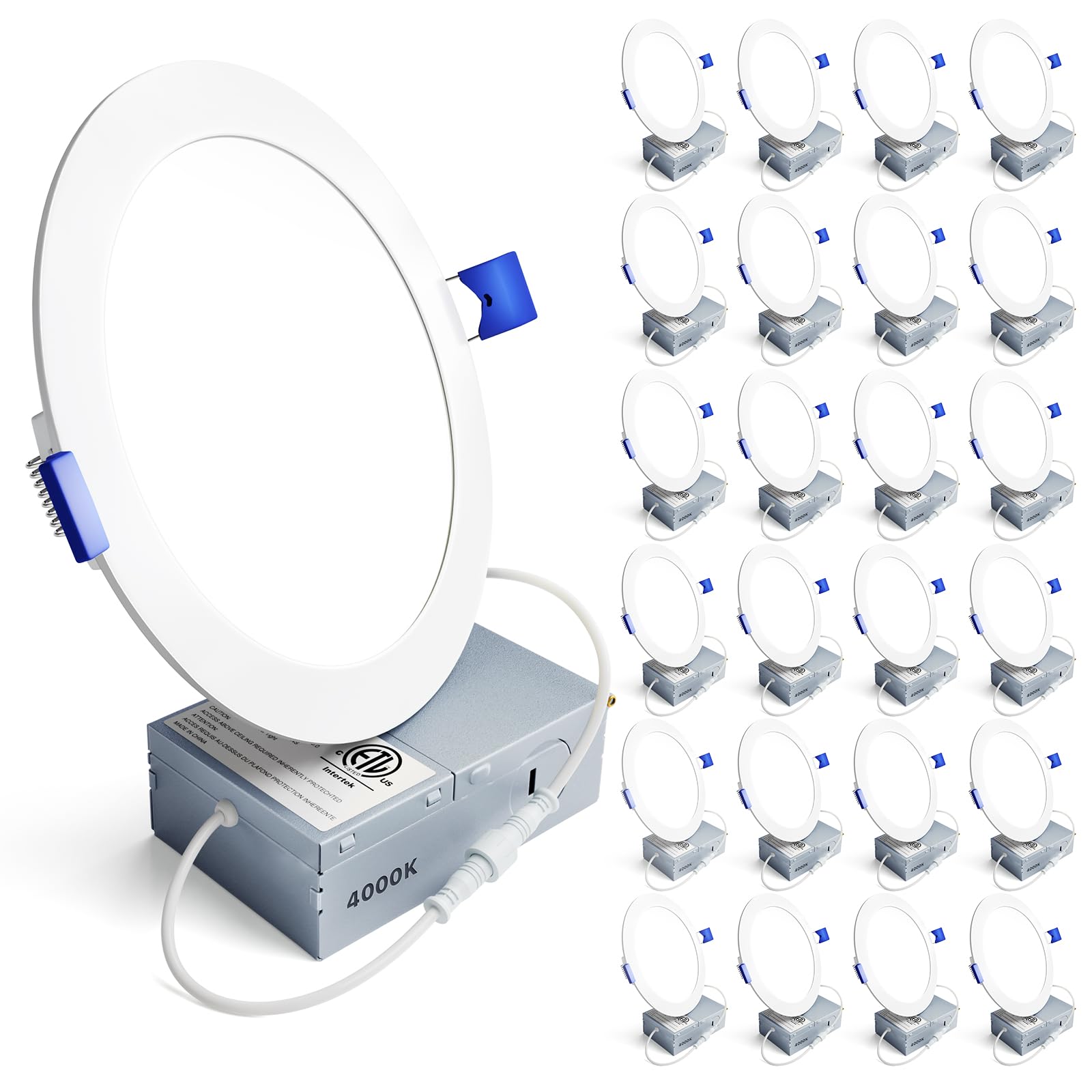 Ensenior 24 Pack 6 Inch LED Recessed Ceiling Light, Dimmable, 4000K Cool White, 1050LM 12W 120V, High Brightness Canless Wafer Downlight - ETL&FCC&IC