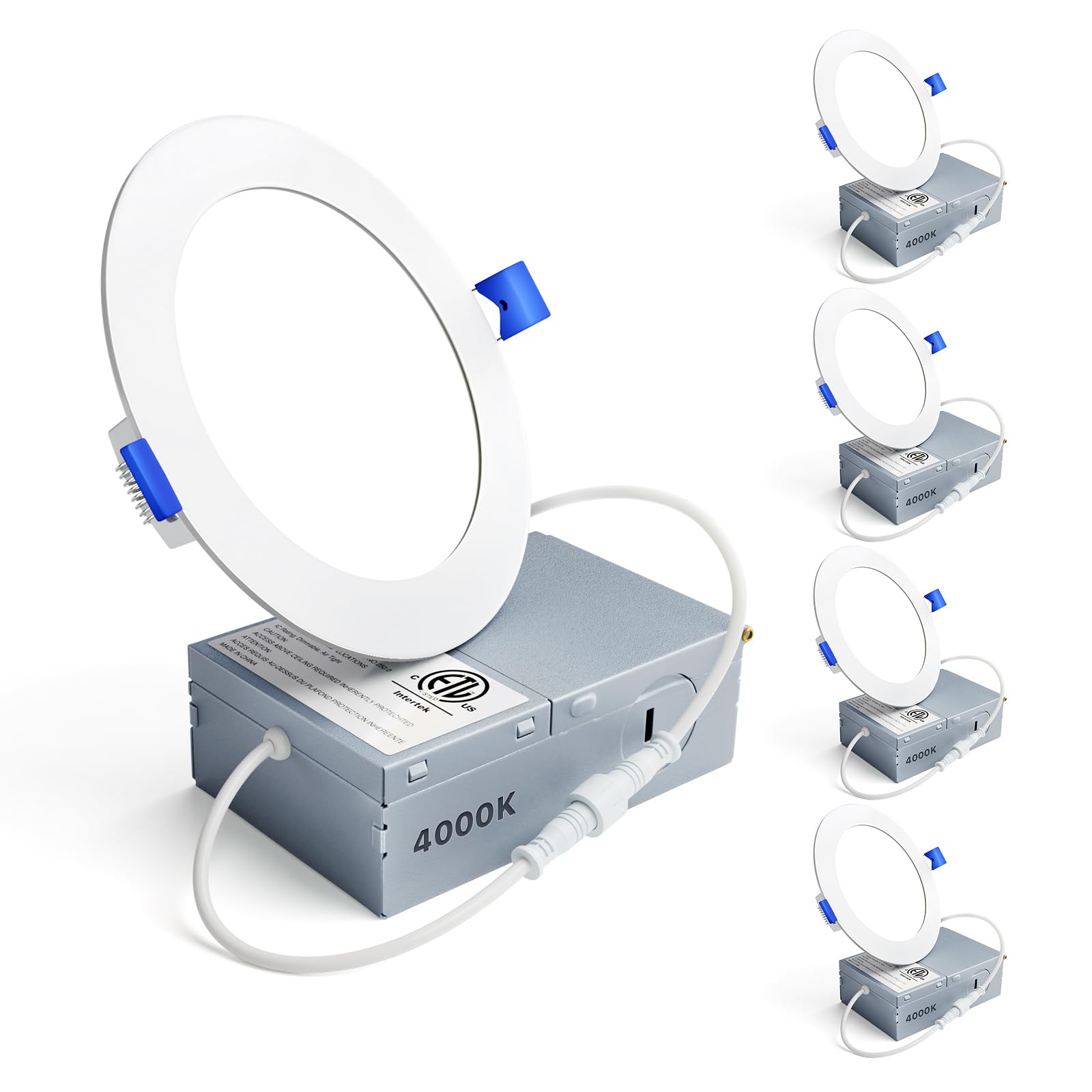 Ensenior 4 Pack 4 Inch LED Recessed Light, Dimmable, 4000K Cool White, 750LM High Brightness, 9W 120V, Damp Rated, Ultra-Thin Canless Wafer Ceiling Light - ETL & FCC & IC