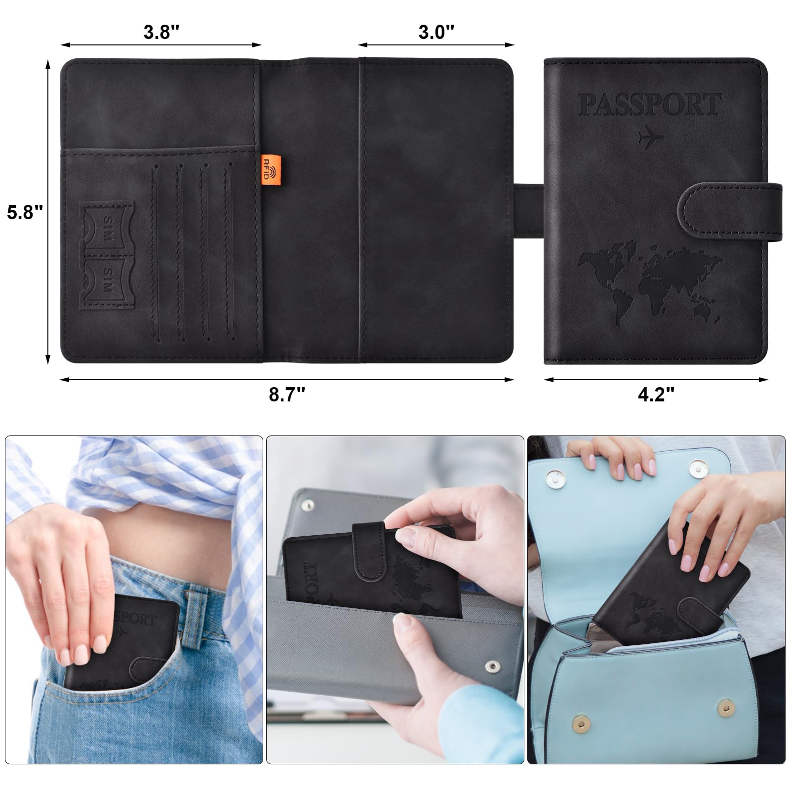 Eoehro Passport Holder for Travel Essentials, Passport Wallet Cover Case for Travel Must Haves Accessories,Passport Book Holders for Women and Men(black)