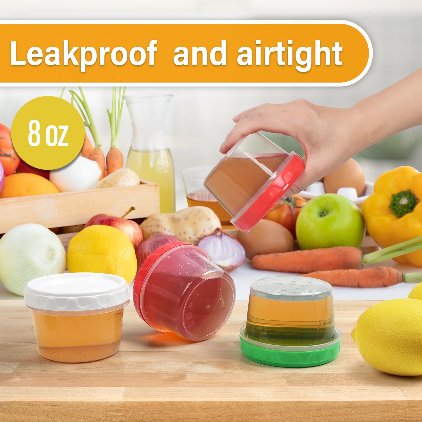 • High-Quality Food Grade Material: Our Reusable 8oz Plastic Containers with Lids are made of premium food-grade PP5 plastic, which is BPA-free, odorless, and safe for storing your favorite meals, including soup, jam, snacks, yogurt, and more.
