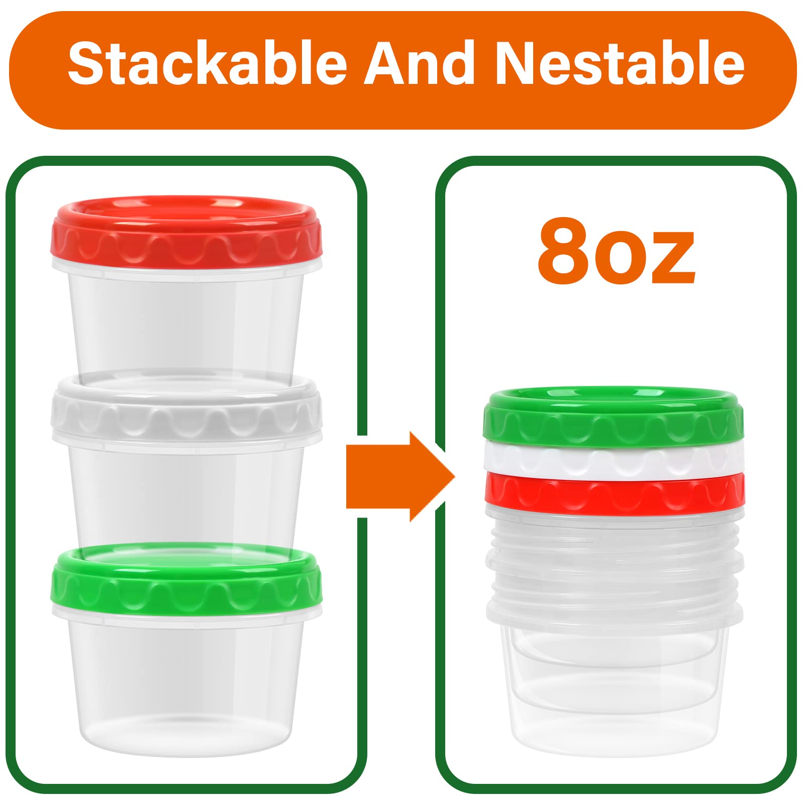 EONJOE 8 oz Small Freezer Containers with Lids Stackable Plastic Food Storage Container 1 Cup Meal Prep Bowls Airtight Dishwasher Safe,12-pack