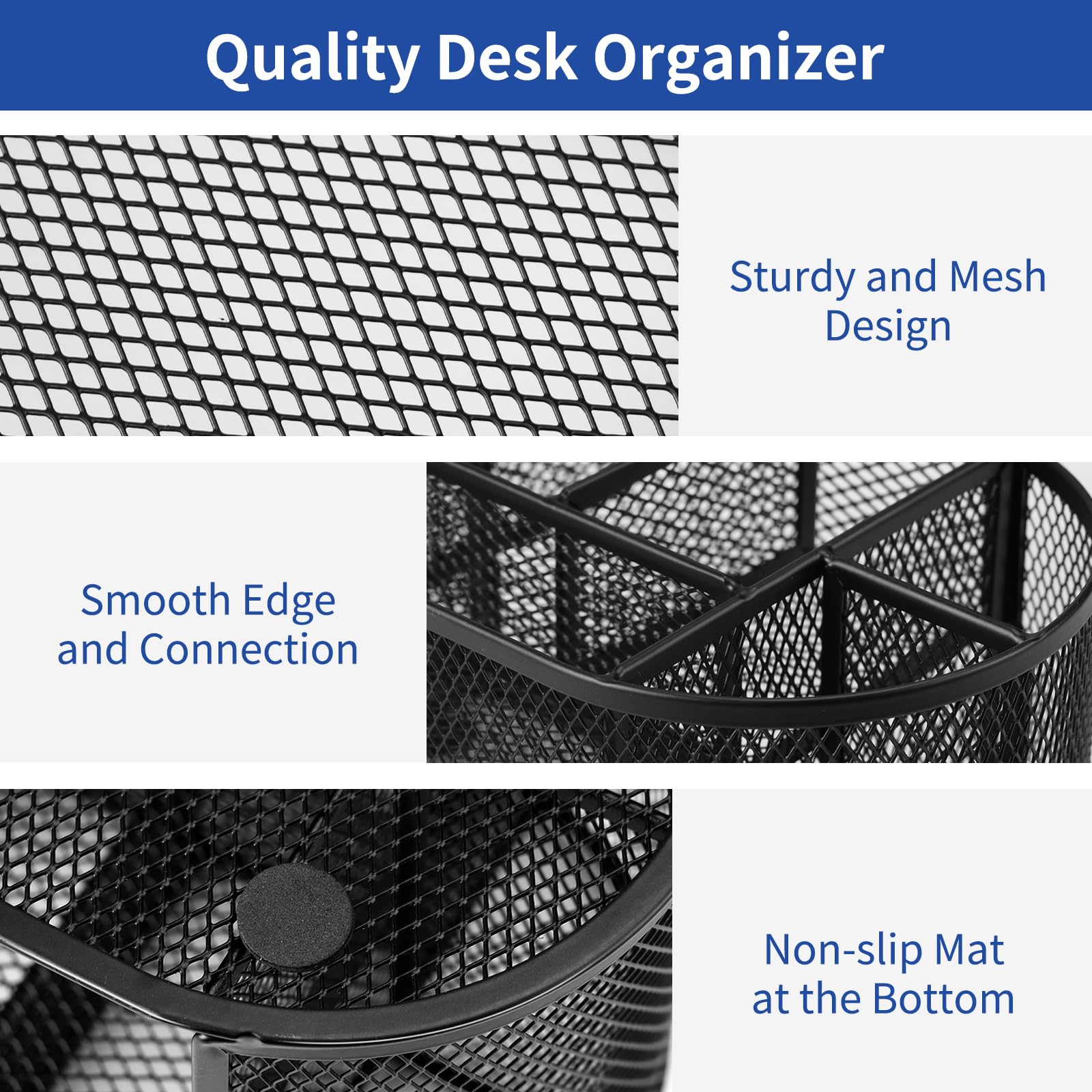 • Quality Organizer: This organizer is made of powder-coated metal, which will not be bent easily. There are non-skid pads on the bottom of the pencil holder, which help to avoid slipping and scratching.