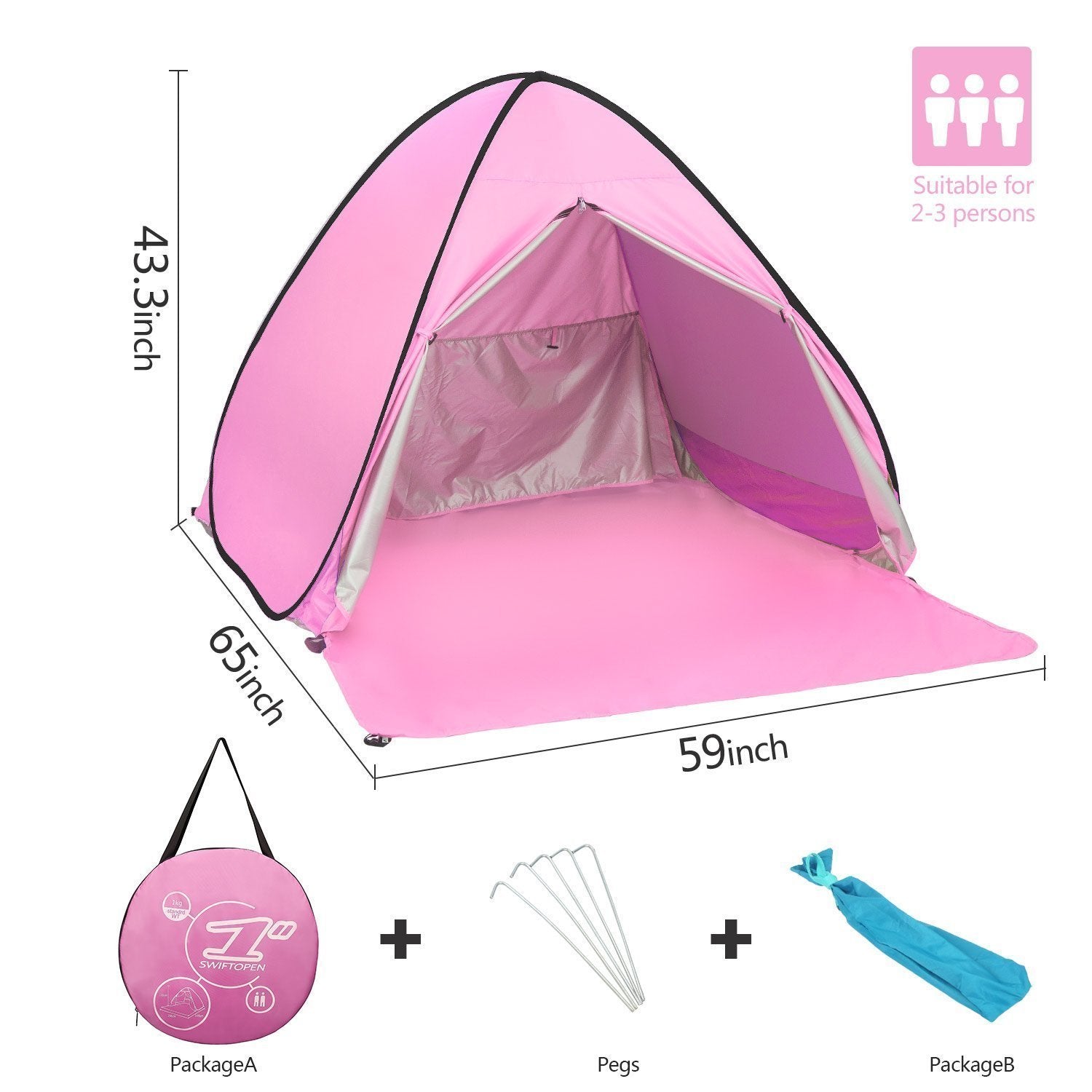 Eplze Automatic Pop Up Beach Tent Instant Portable Quick Sun Shelter for 2-3 Persons (Pink)