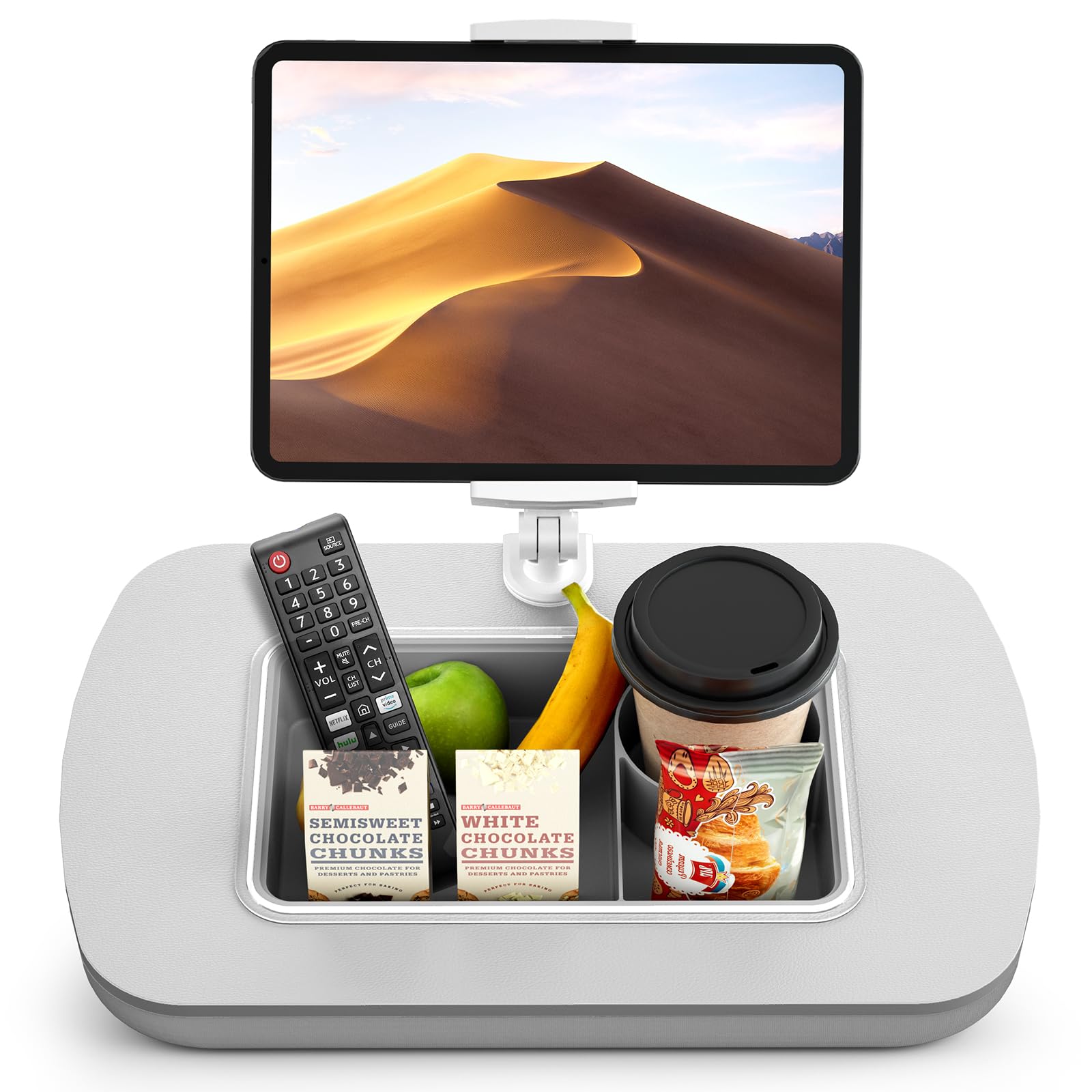 ERGONOV Tablet Stand Pillow with Snack Bowl, iPad Lap Holder for Hands-Free Reading and Relaxation on Bed,Couch,Recliner, 360° Rotating Clip for 4.7-13" Kindle,eBook,Tablet,iPhone (Light Gray)