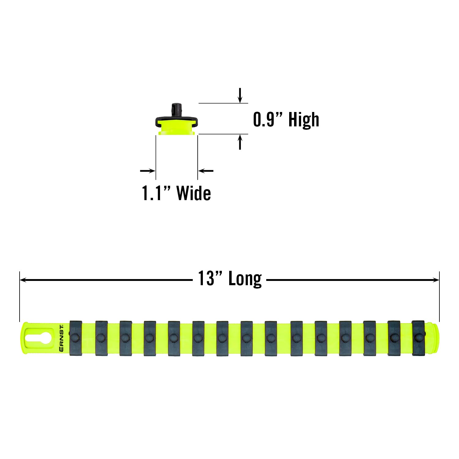 Details: ERNST 13-Inch Socket Rail Organizer with 15 1/4-Inch Twist Lock Clips, High Visibility (8437HV)