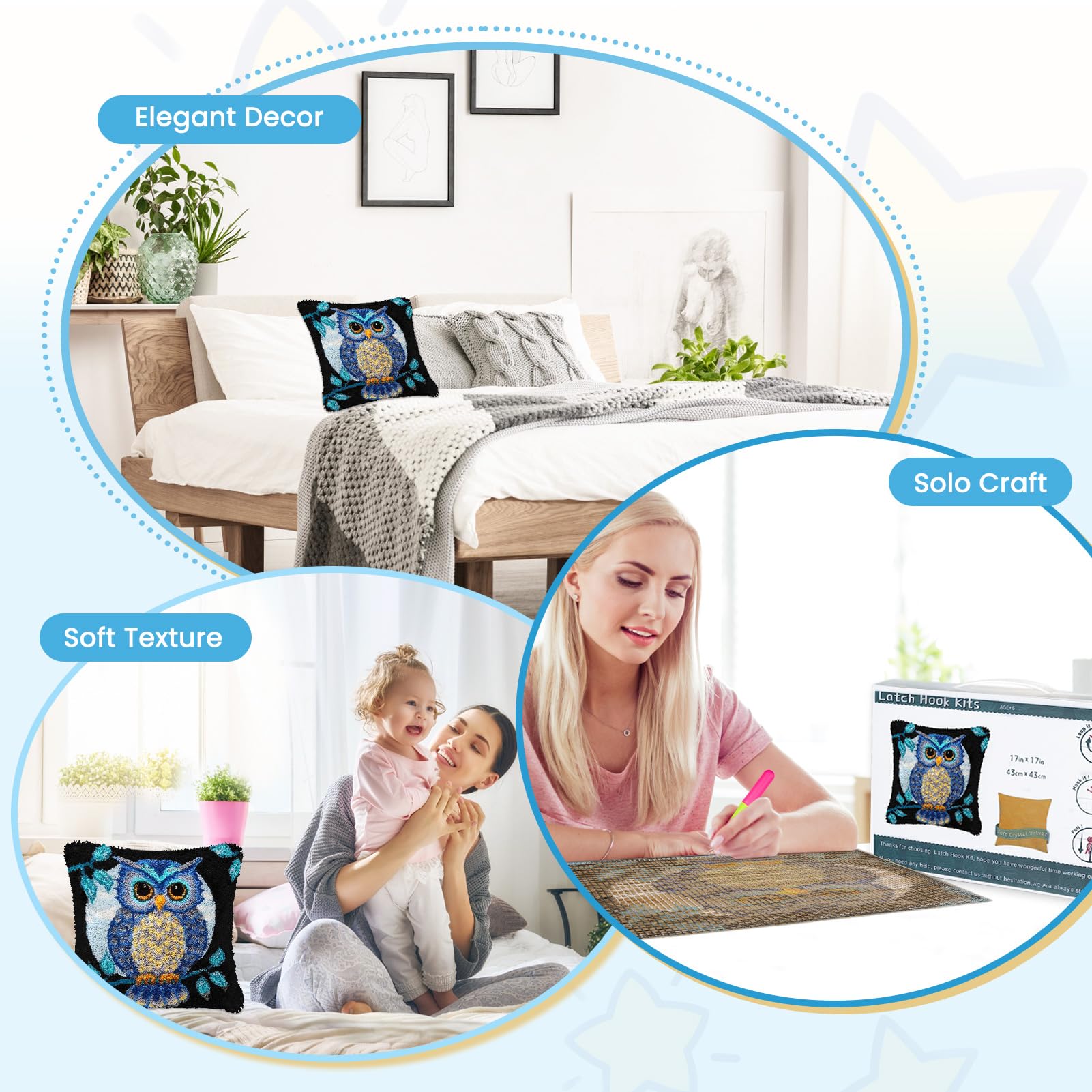 • Versatile Home Use: This DIY latch hook pillow kit is wonderful for creating a decorative cushion for your sofa, chair, or bed. Its vibrant Full Moon Owl design adds a stylish and cozy accent to any space.