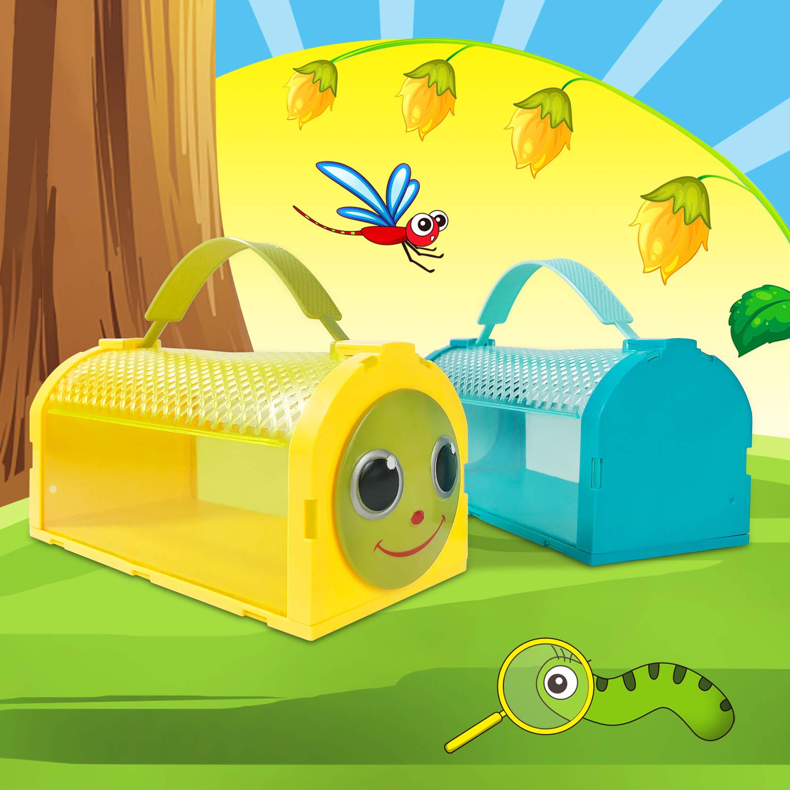 ESSENSON Bug Catcher Kit, Outdoor Toy Gift for 3 4 5 6 7 8+ Year Old Boys Girls Kids, 2 Pcs Bug Cage Butterfly, Outdoor Explorer Kit with Whistles for Backyard Exploration