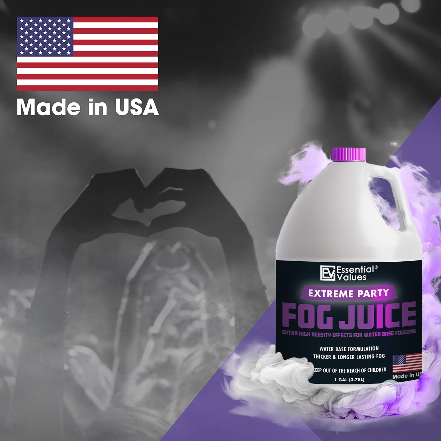 Essential Values Fog Machine Fluid - Extreme High Density (128 FL OZ / 1 Gallon) Manufactured in USA – White-Out Conditions with Lasting HEAVY Fog for Water Based Foggers Designed for 700 Watts+