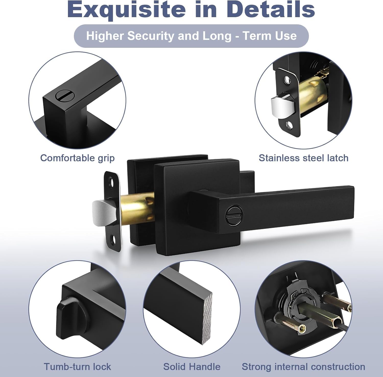 • 【Premium Quality Door Lock】Bedroom black door handles are made of high quality zinc alloy, Ensures that the entire matte black door knobs for bedrooms will not rust or corrode in high humidity environments; Solid column security bolt for anti-sawing protection; The smooth black matte finish has an elegant look, works perfectly with all different colors of doors and lighting conditions