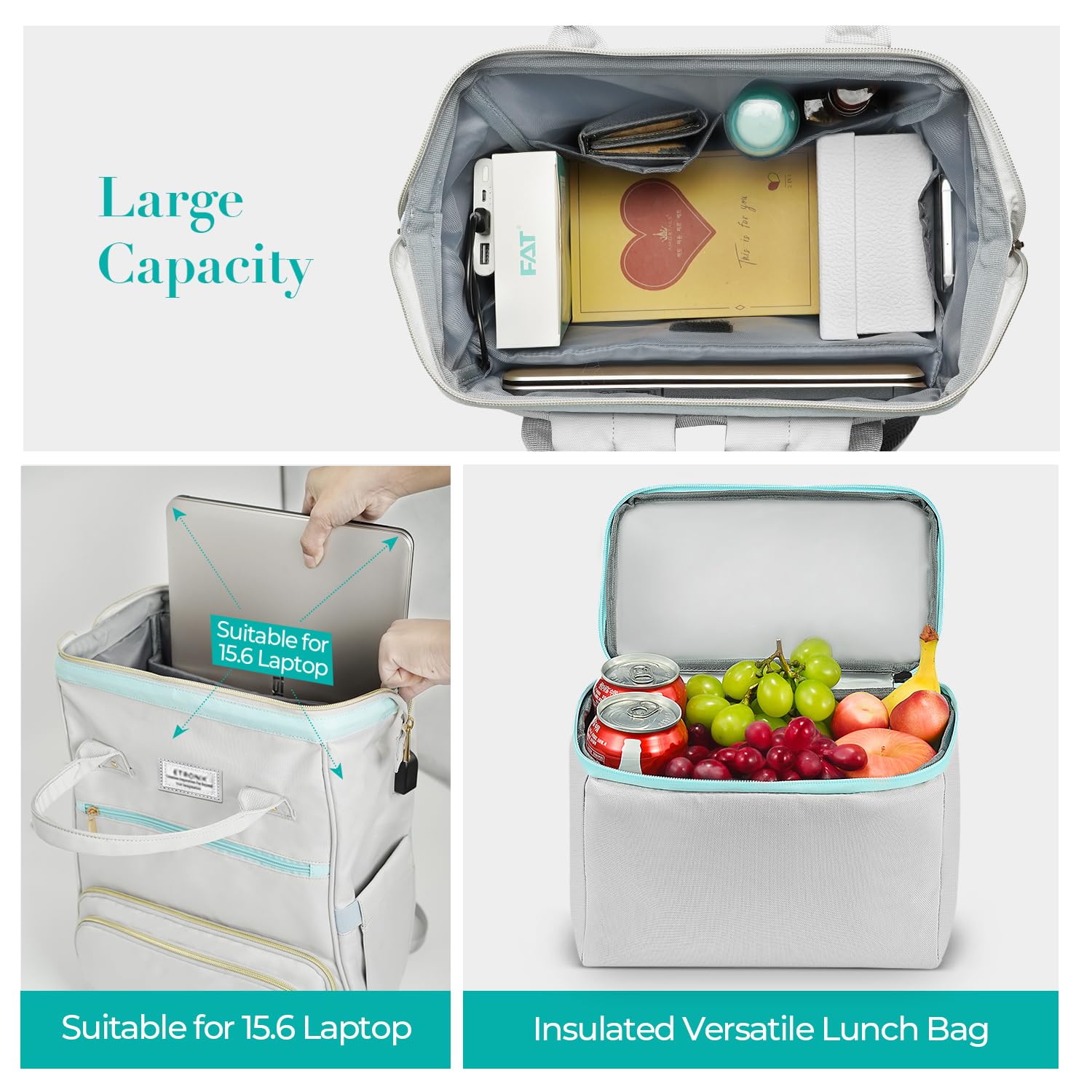 ETRONIK Lunch Backpack, 15.6 Inch Laptop Backpack with USB Port, Stylish Nurse, Teacher Work School Bag with Insulated Cooler Lunch Box for Women Men, College Backpack for Travel, Grey Blue