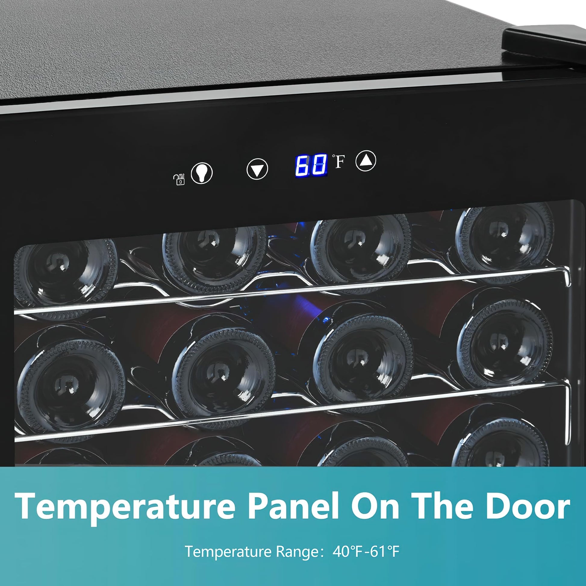 • 【One-Touch Temperature Control】Wine fridge keep your wine fresh with temperature from 40°F to 61°F and maintain humidity. The easy-to-use touch panel with digital display lets you set the right temp simply for each type of wine in wine cooler refrigerator, so they're ready to drink whenever you want