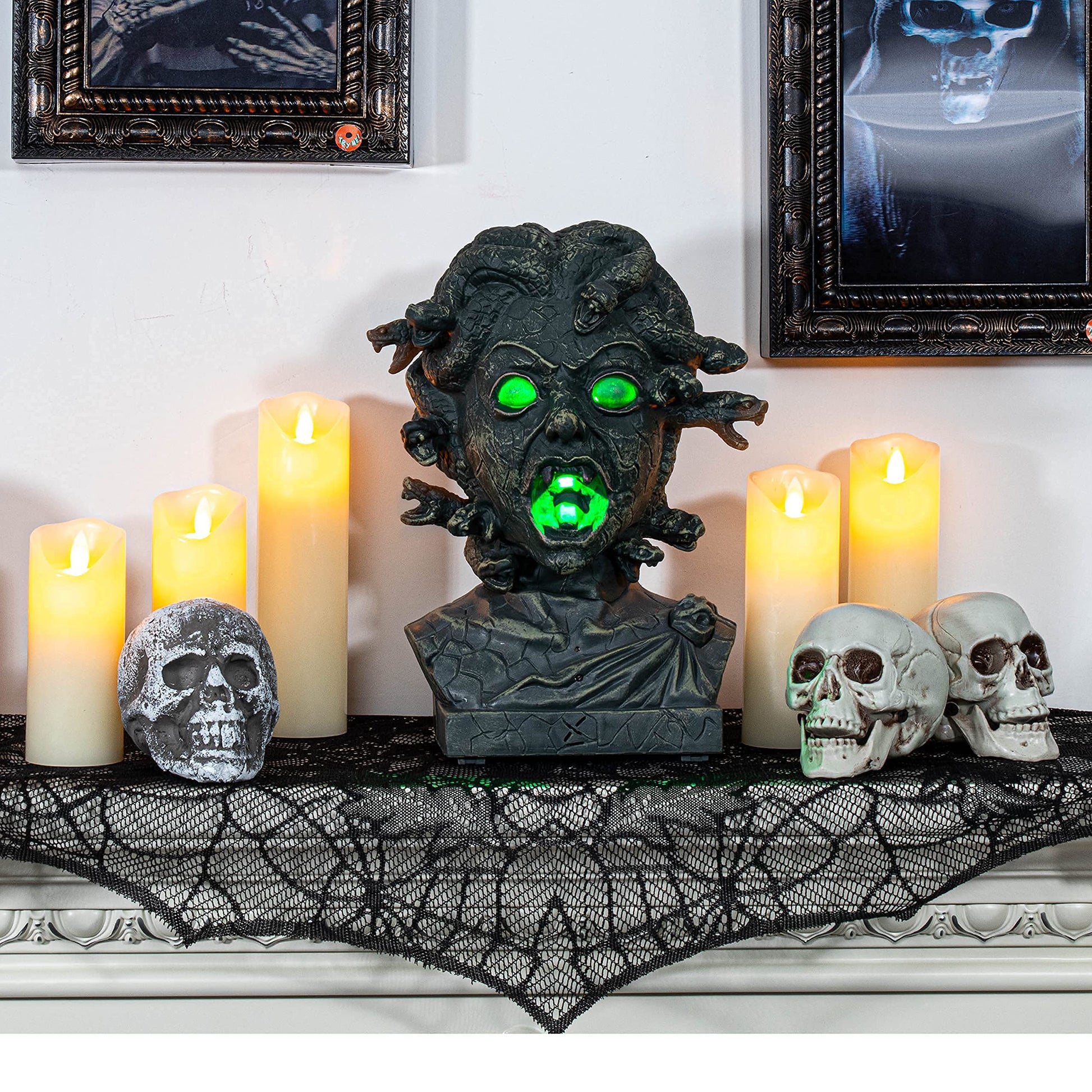 EVAPLUS 12 inch Electronic Animated Medusa Bust,Indoor/Outdoor Halloween Decoration,Creepy Tabletop Decor