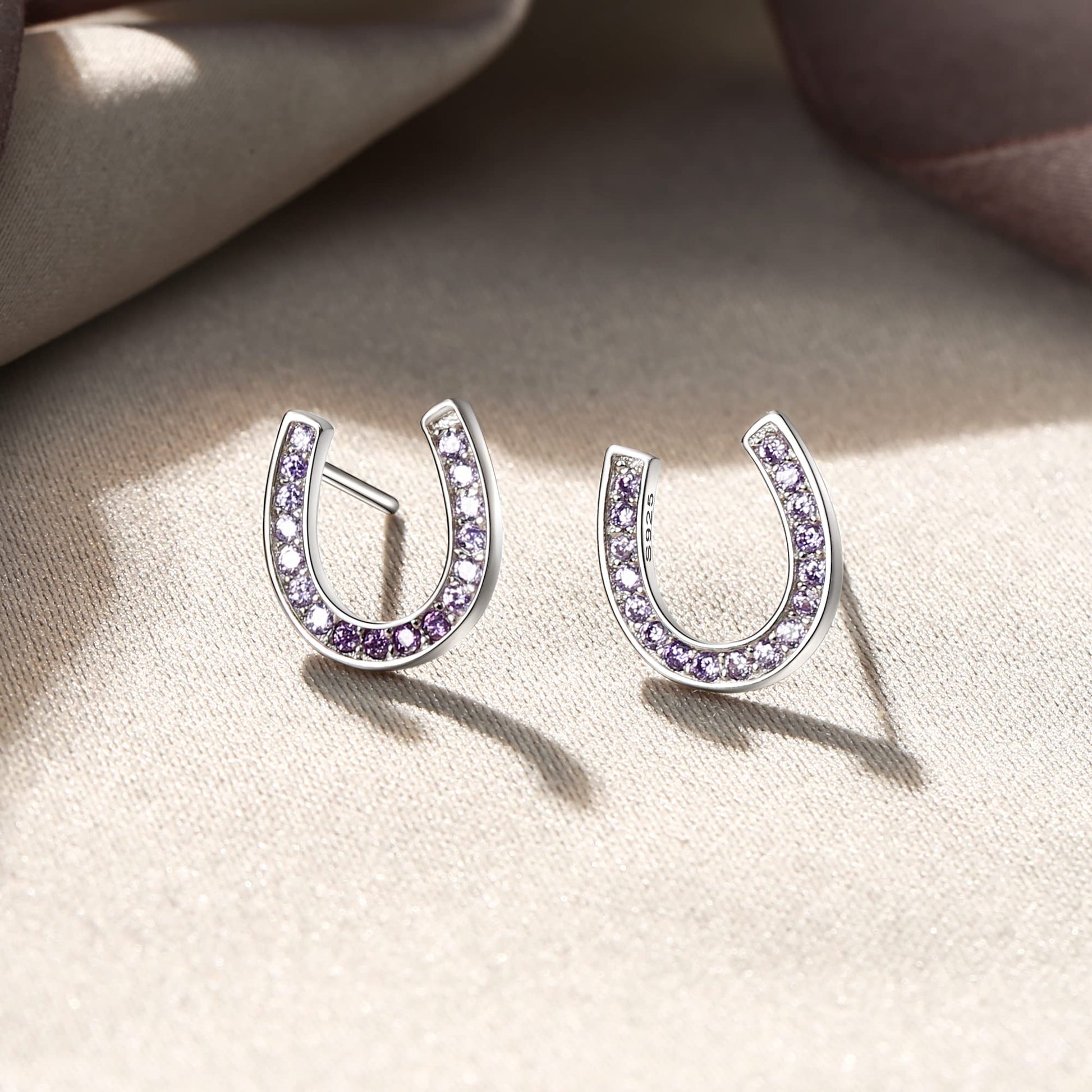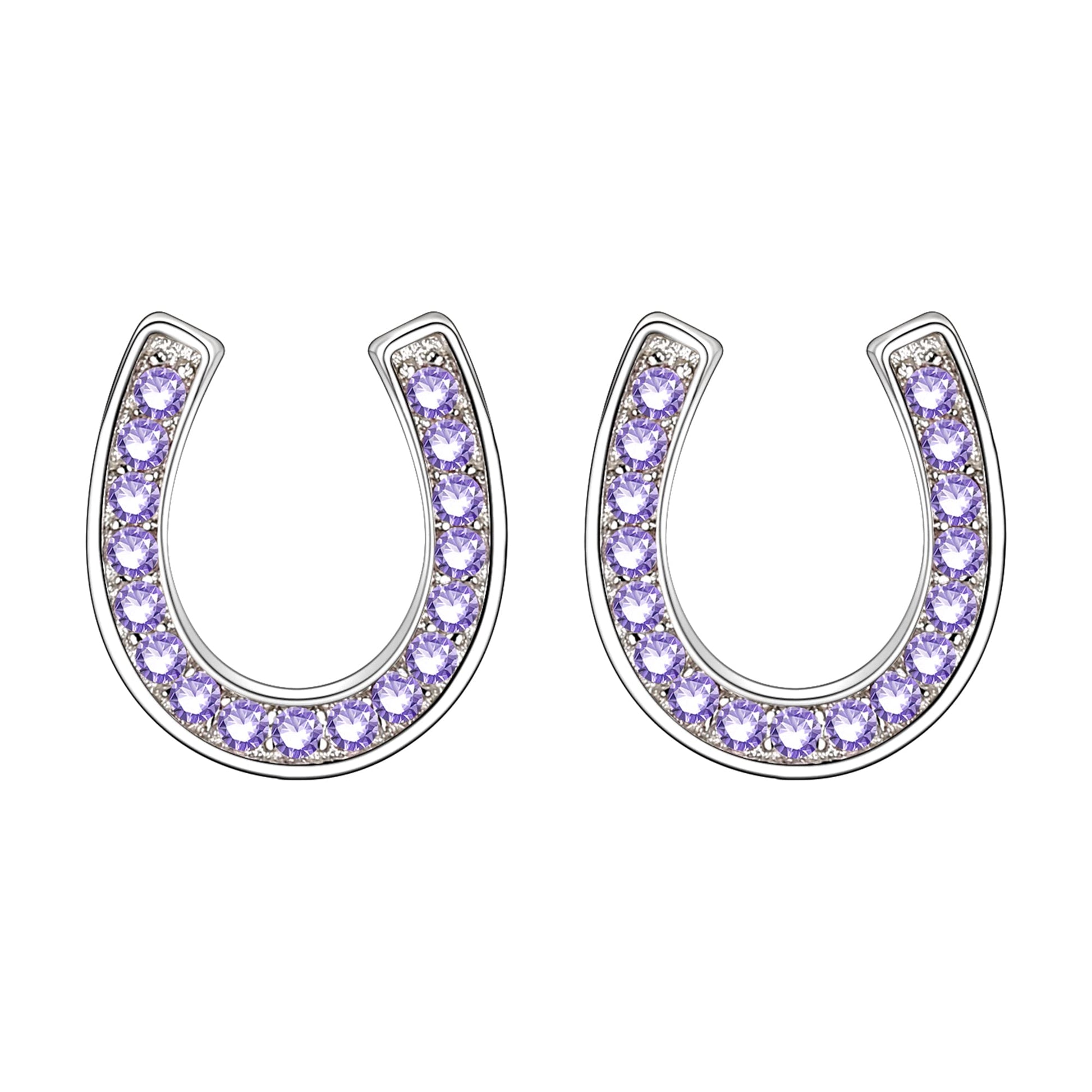 EVER FAITH 925 Sterling Silver Elegant Pave Setting Purple Cubic Zirconia Birthstone Lucky Horseshoe Stud Earrings