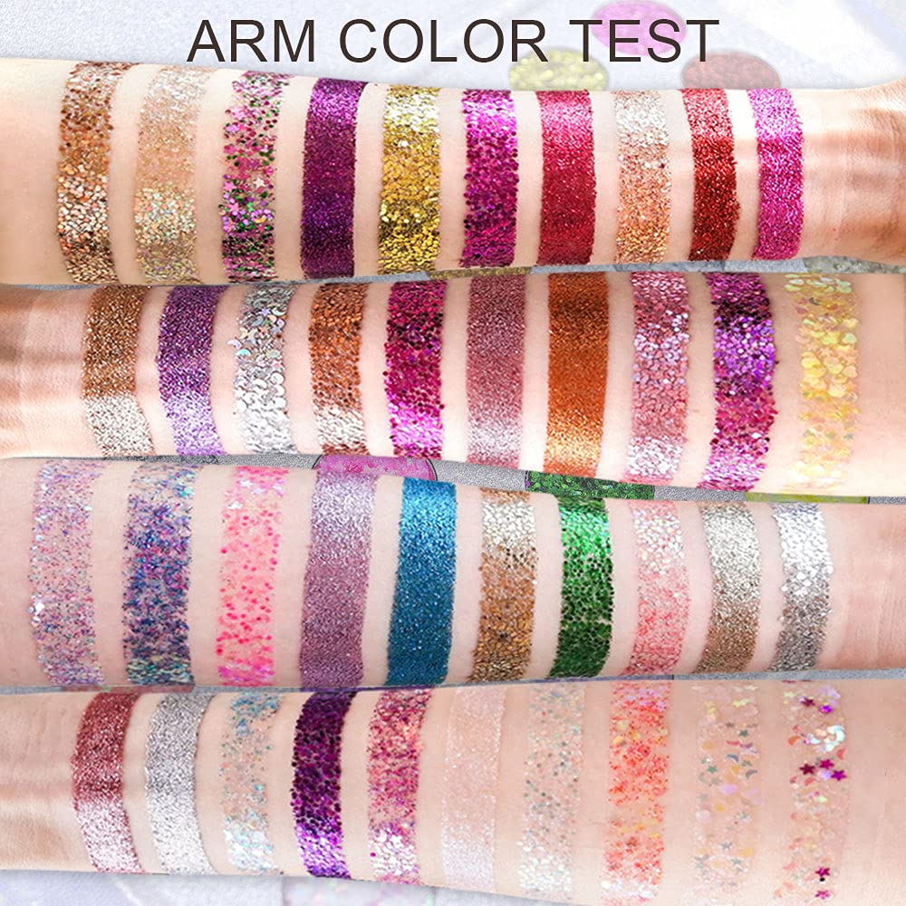 • ❤【40 Glitter Colors】 40 Colors Gel Glitter Eyeshadow Palette,Highly Pigmented,Formulated to last for long and Waterproof,without losing any of its shine,thus catering to every taste and preference.Perfect for various occasions, such as Halloween, party, wedding, bar, ball, camping, Stage makeup, or just when you want to feel like a sparkling protagonist!