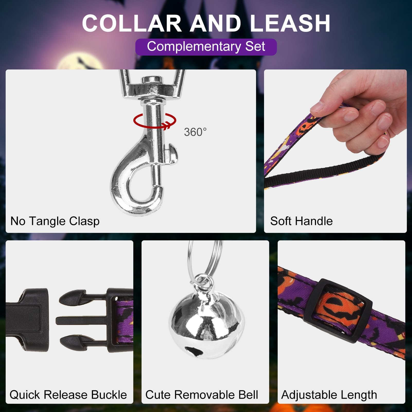 • Halloween Pattern: The puppy harness collar and leash set are featured with a Halloween elements pattern in purple color, making your furry companion the most attractive and fashionable one. Not only suitable for festivals, but also for daily queuing and other occasions.