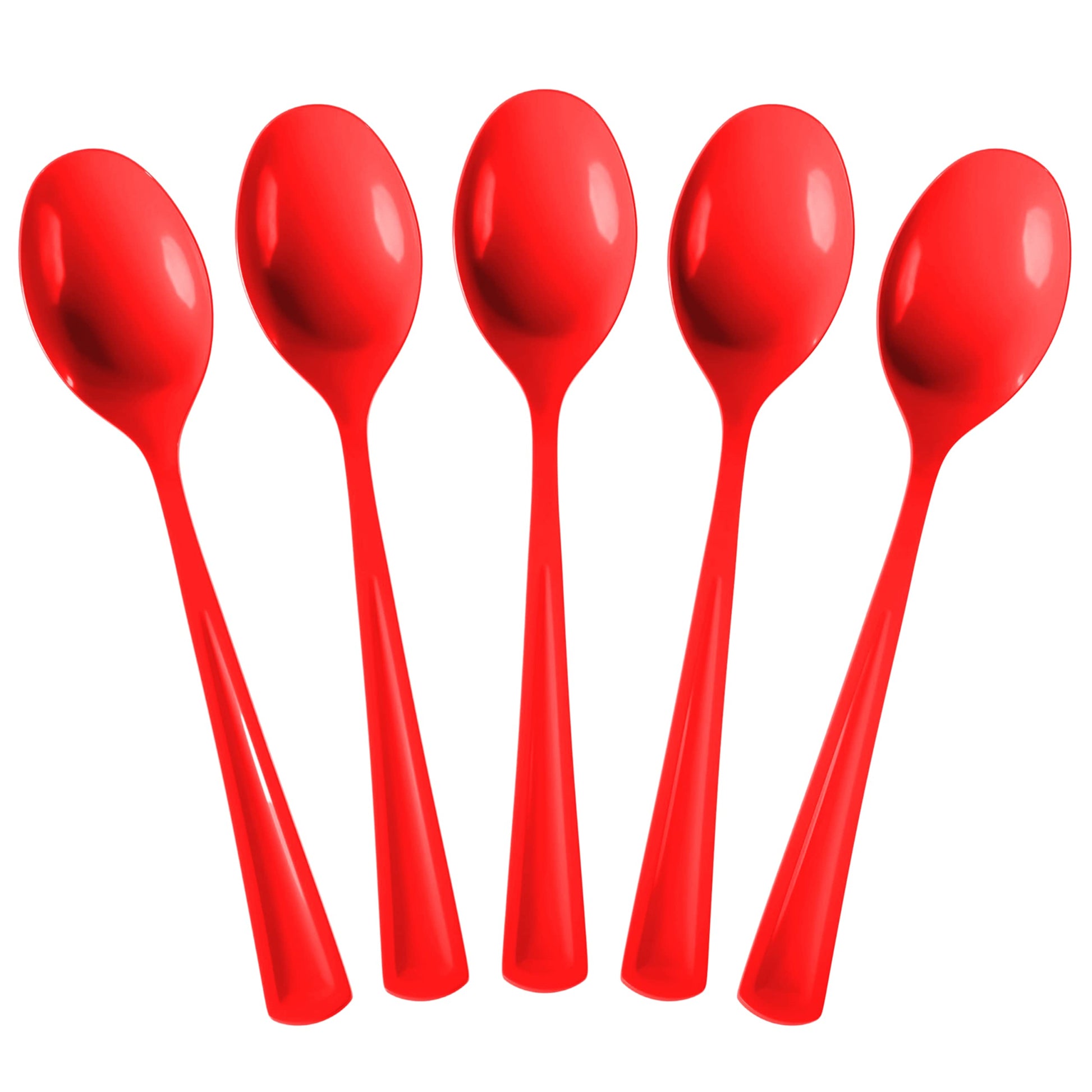 • Includes: 50 pack of heavy-duty 7.5 inch Red plastic Spoons. These durable Spoons are strong yet disposable cutlery making them the perfect plastic silverware option for any party or occasion. Offering multiple different color options, they are sure to match your decor.