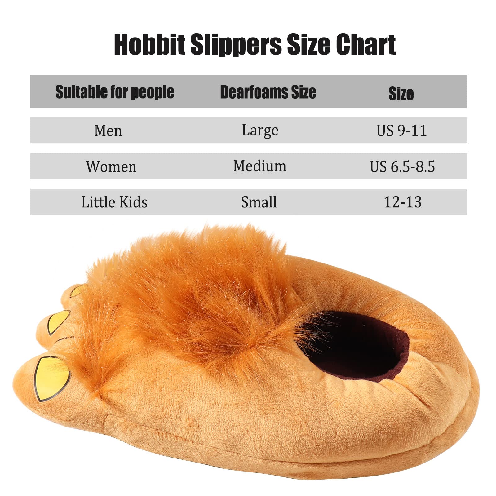 Features: - 3 sizes are designed for both adults and kids, especially suitable for parents and children. - Soft velvet surface with thick stuffed plush, comfortable and cozy to wear, to keep your feet warm in cold winter. - Anti-skid rubber dots on the soles, this bigfoot slippers are ideal house shoes to allow you to lounge around the bedroom, living room safely. - Vivid and funny hobbit feet design, unique gifts for your friends and kids, perfect for relaxing time, cosplay, Halloween, home wear and other themed parties.