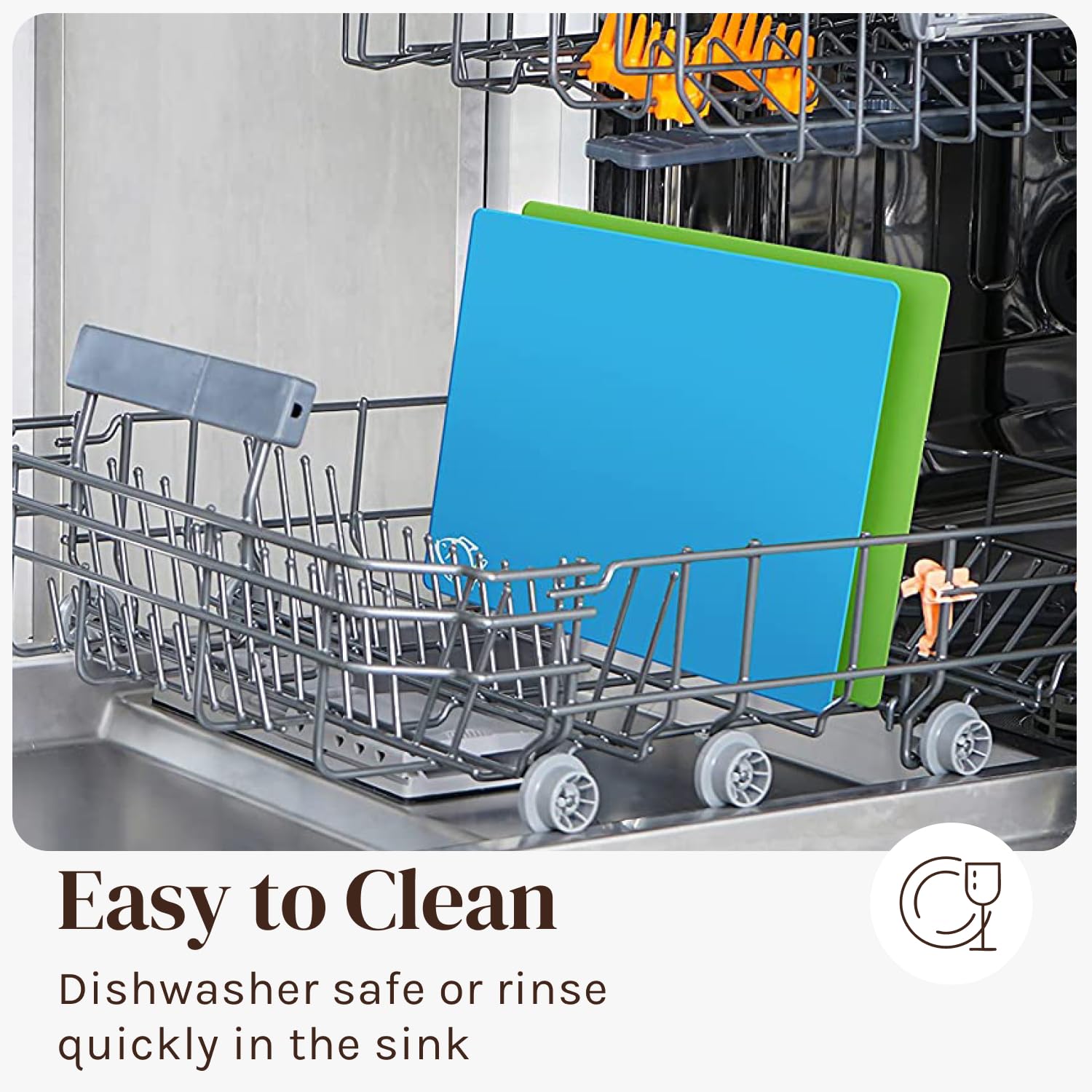 • OUR TEXTURED & FLEXIBLE CUTTING BOARD SET IS BUILT TO LAST - Don't just buy a thin, flimsy see-through sheet of plastic like you did last time. Other cutting mats will warp heavily in the dishwasher, slide dangerously on your countertop, and are often flimsy and hard to cut on. What's the point of buying a cutting mat if your sharp knife will cut right through them? They may be cheaper, but you're not going to be satisfied, or get much of a lifespan out of them.