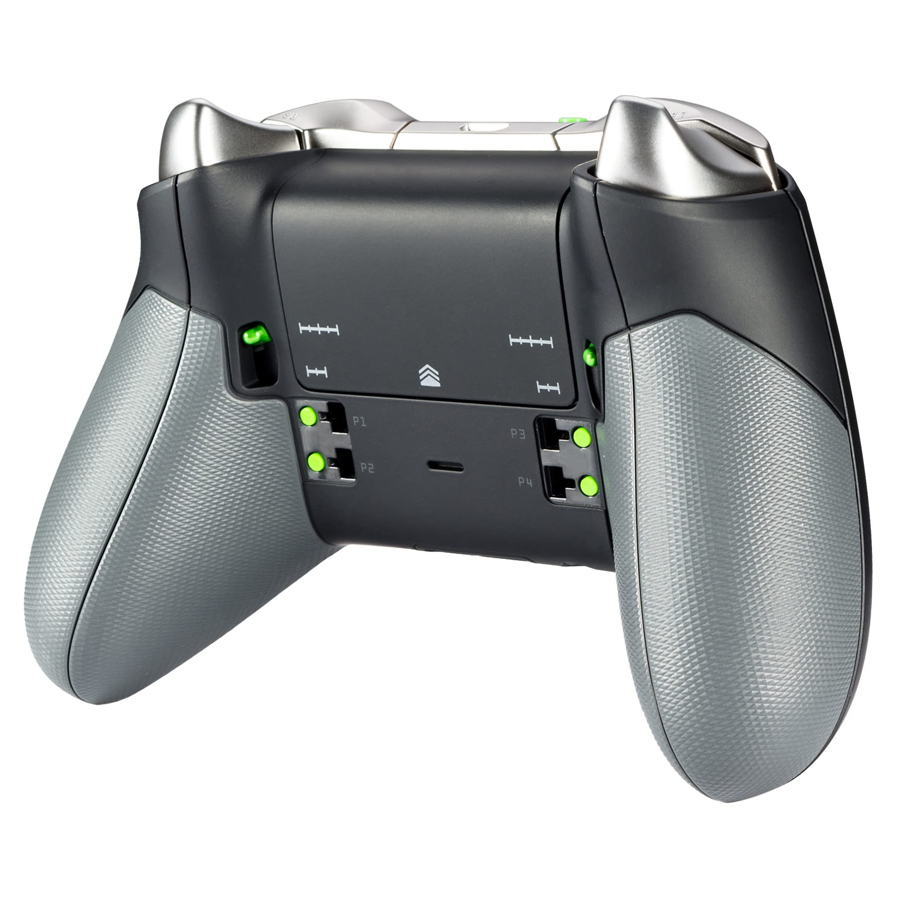 eXtremeRate Gray Rubberized Right Left Side Rails, Replacement Rear Handle Grips, Back Panels Faceplates Kits for Xbox One Elite Controller (Model 1698)