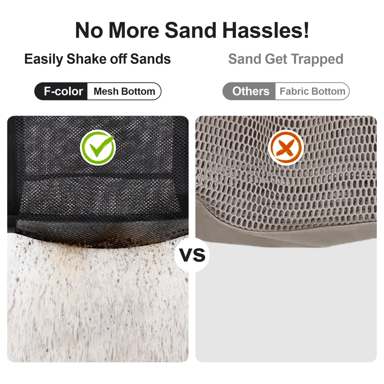 Sturdy Mesh, Sand Shakes Off Instantly – Seriously: the beach tote is made of strong ripstop mesh, 3mm ripstop mesh acts like a self-cleaning sieve. Shake it, pack it, done. The 9 inch long shoulder strap perfectly fits women and men