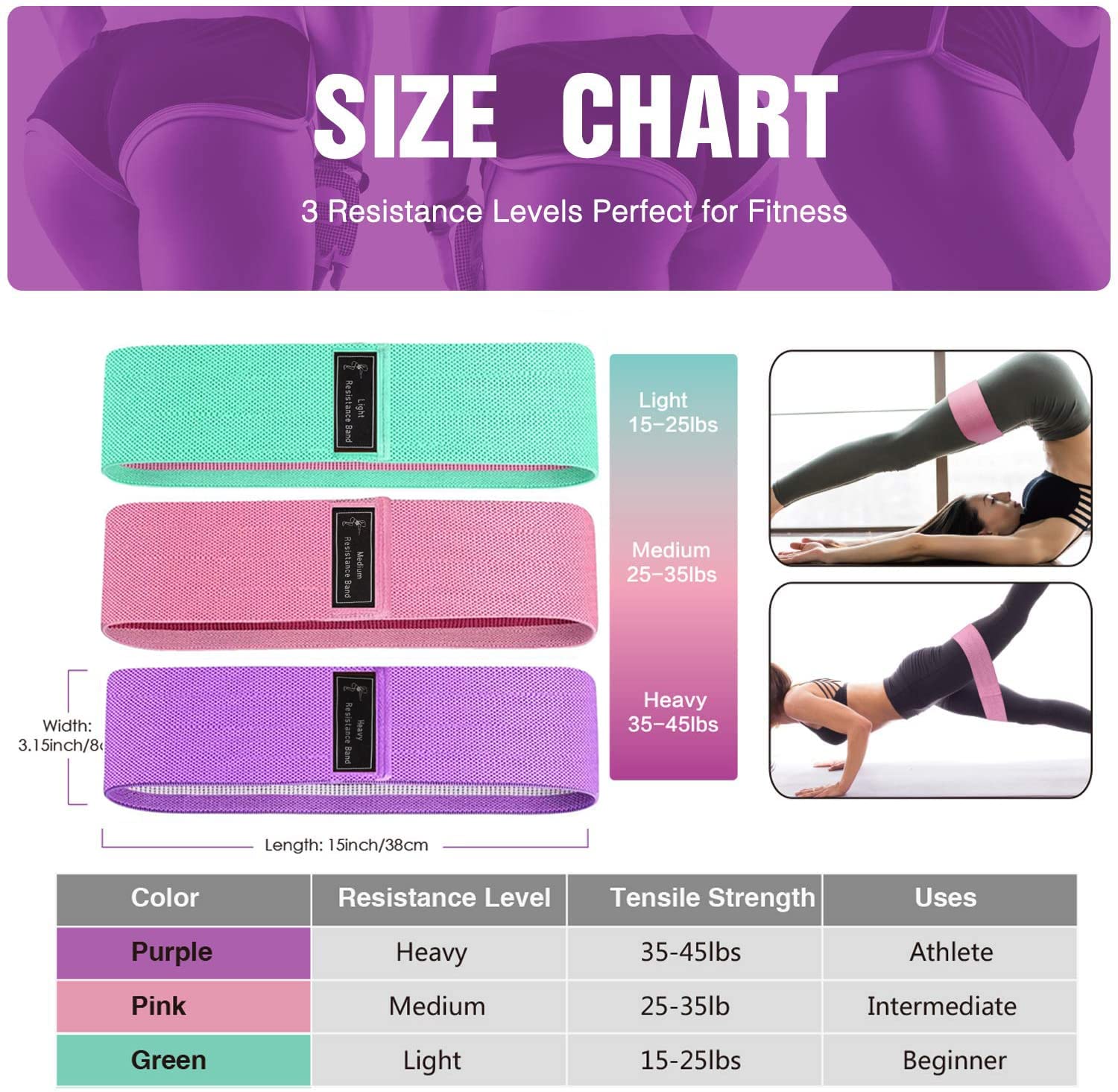 Fabric Resistance Bands Set for Legs and Butt, Non-Slip Stretch Fitness Exercise Workout Loop Booty Hip Band for Women at Home or Gym - Green, Pink, Purple