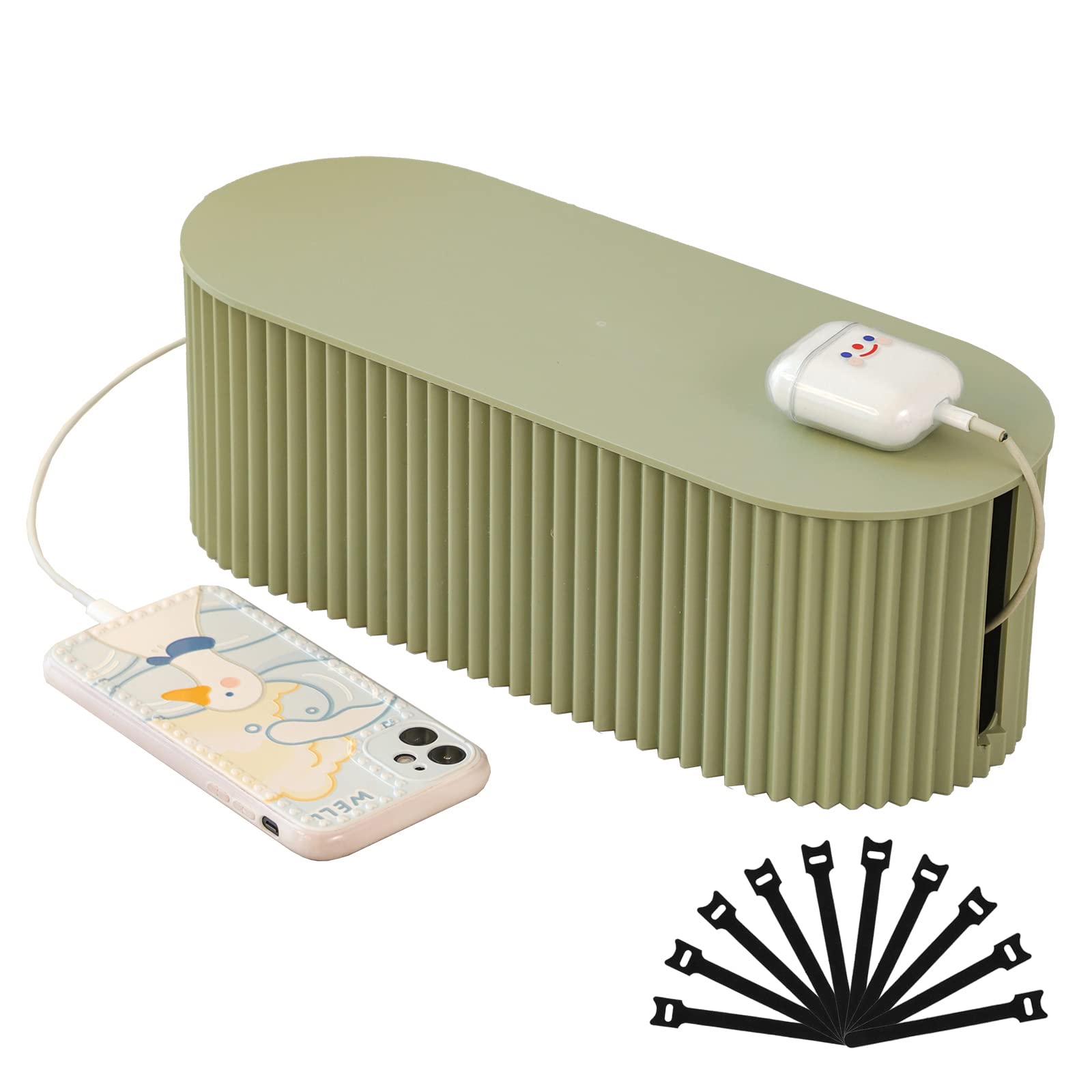 FABROK Cable Management Box, Cord Organizer Box with 10 Cable Ties, Power Strip Storage to Hide Charger Adapter Power Cord Charging Station(Small/Green)