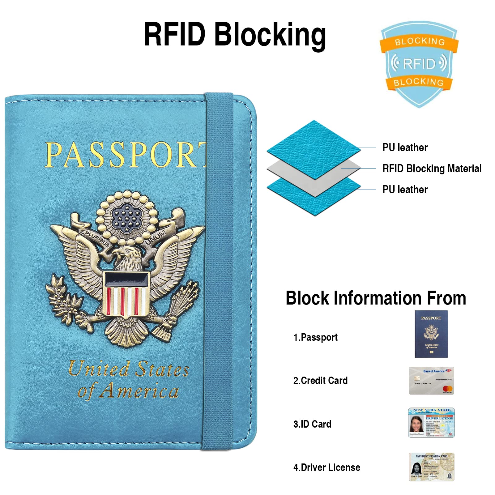 • [RFID BLOCKING PASSPORT WALLET] - Our passport wallets with built-in RFID blocking material prevent the disclosure of personal information such as ID cards, credit cards, SIM card, boarding pass, tickets, driver's licence and passport, and keep your personal information safe wherever you go. Passport holder for travel family is used to prevent thieves from swiping your credit card to steal your personal information in airports or crowded places.